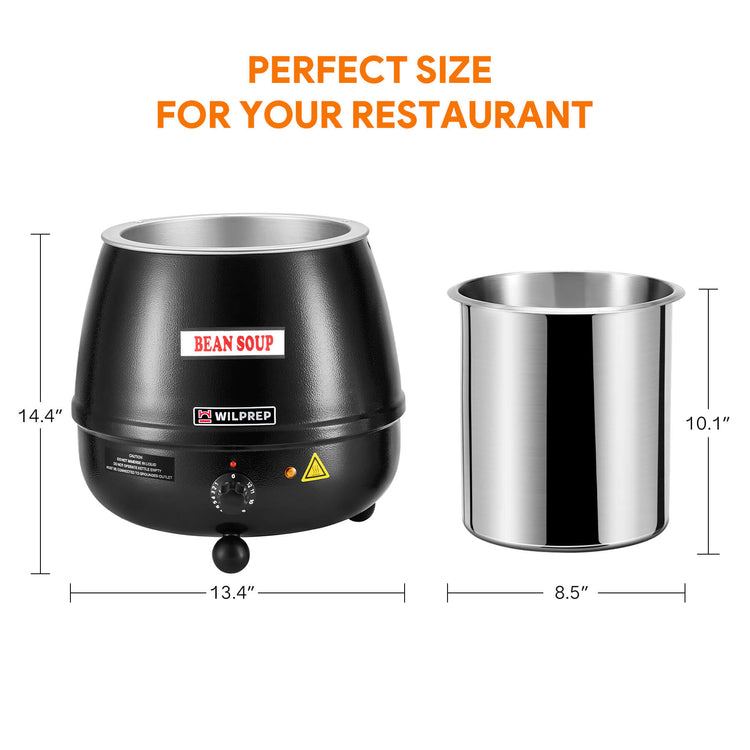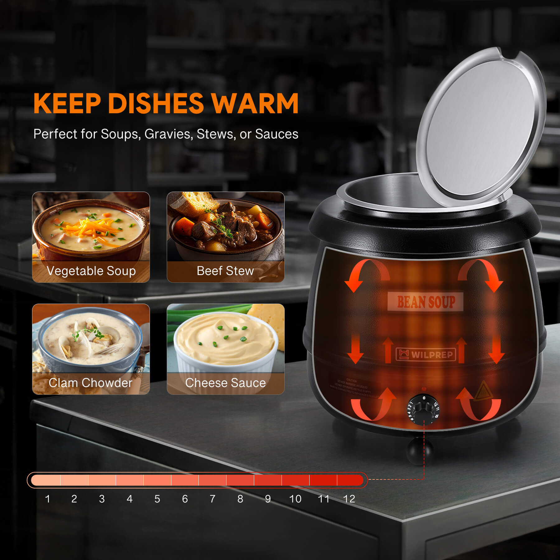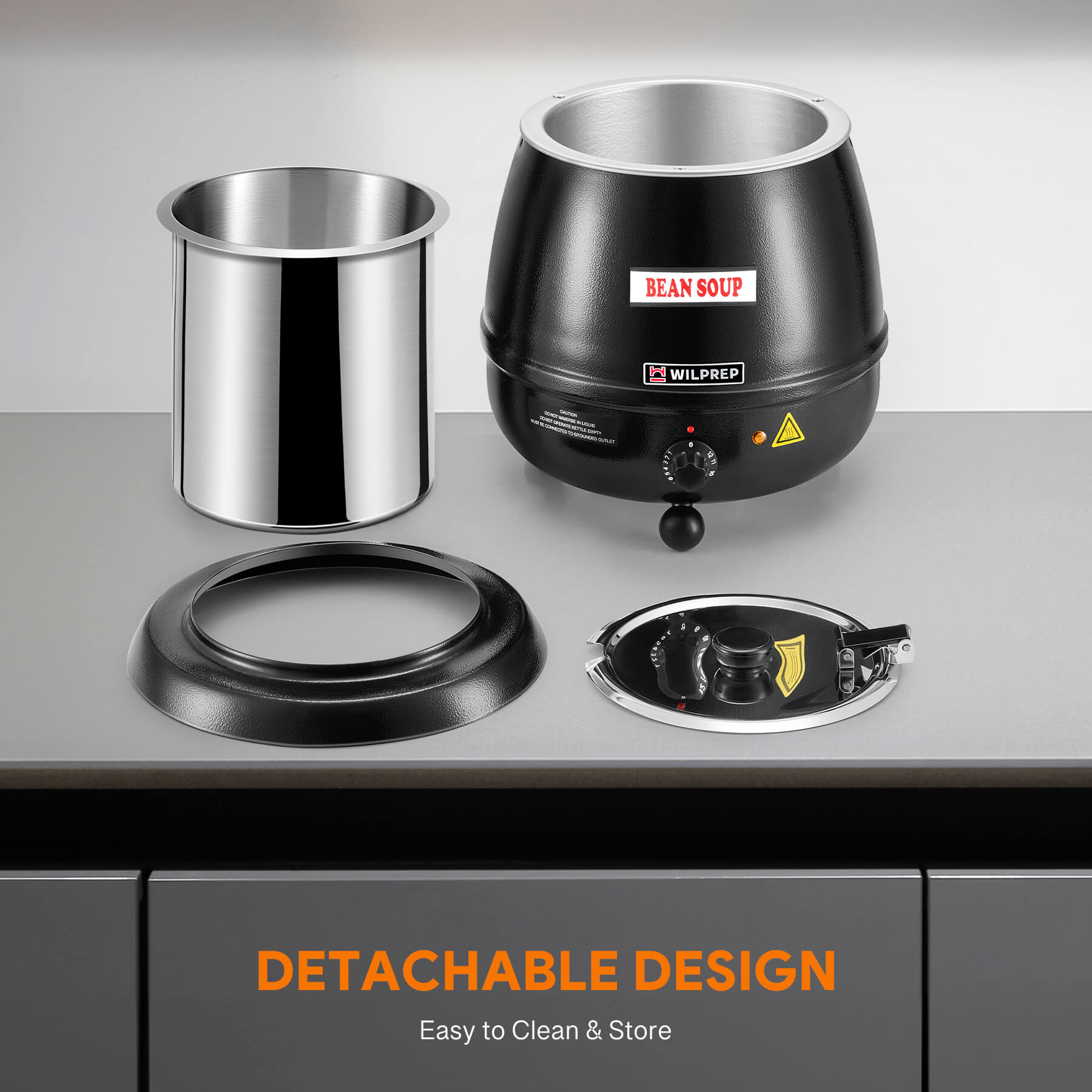 Feed a Crowd: With a spacious 6 quart (5.7 L) capacity and 300W heating power, Wilprep's soup kettle warmer ensures your soups and sauces are always ready for serving no matter the occasion, be it a bustling restaurant or a cozy family gathering.
