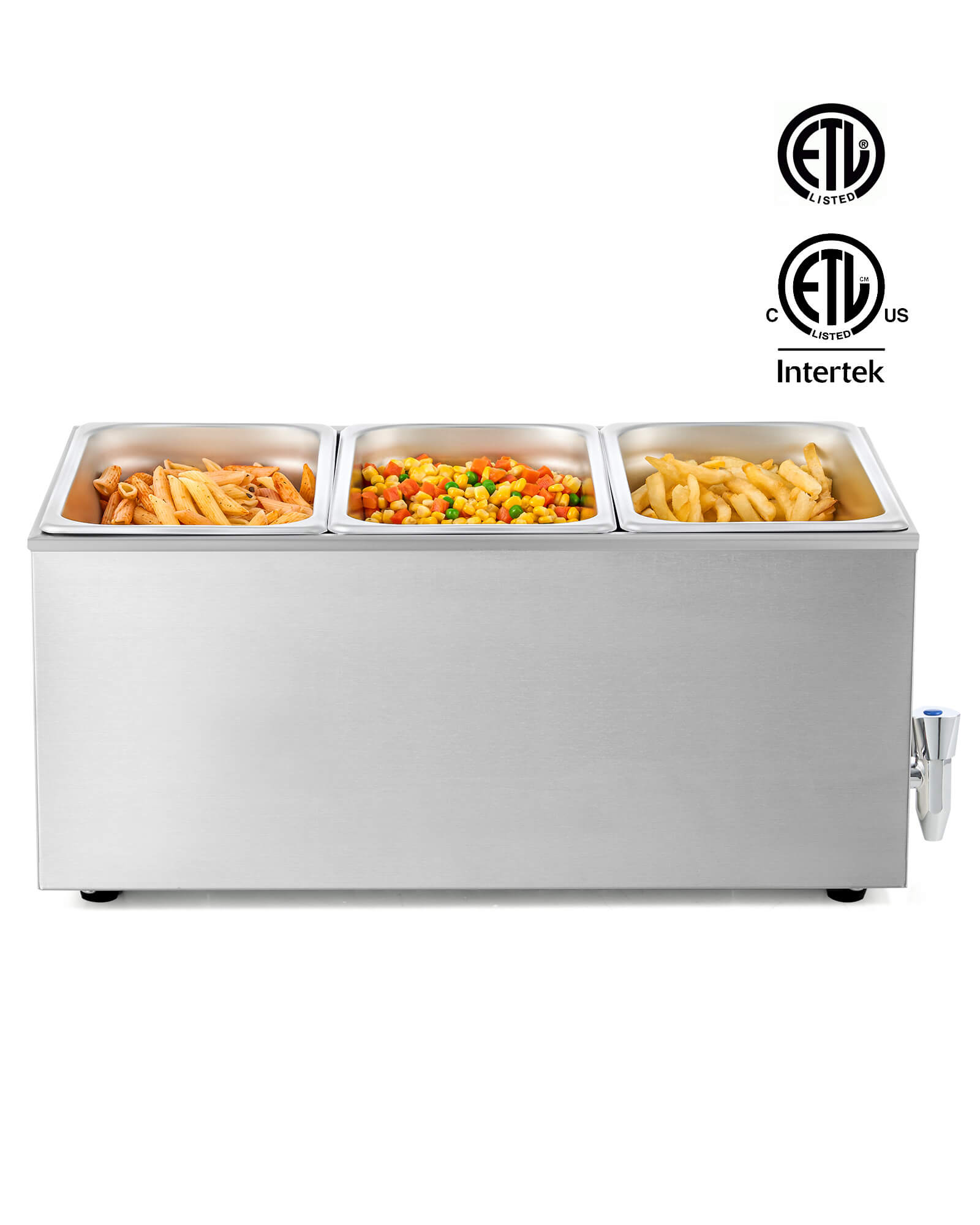 - ETL Certified Food Warmer: Crafted from high-grade stainless steel and backed by ETL certification, this buffet server ensures superior corrosion resistance, easy maintenance, and a reliable cooking experience.