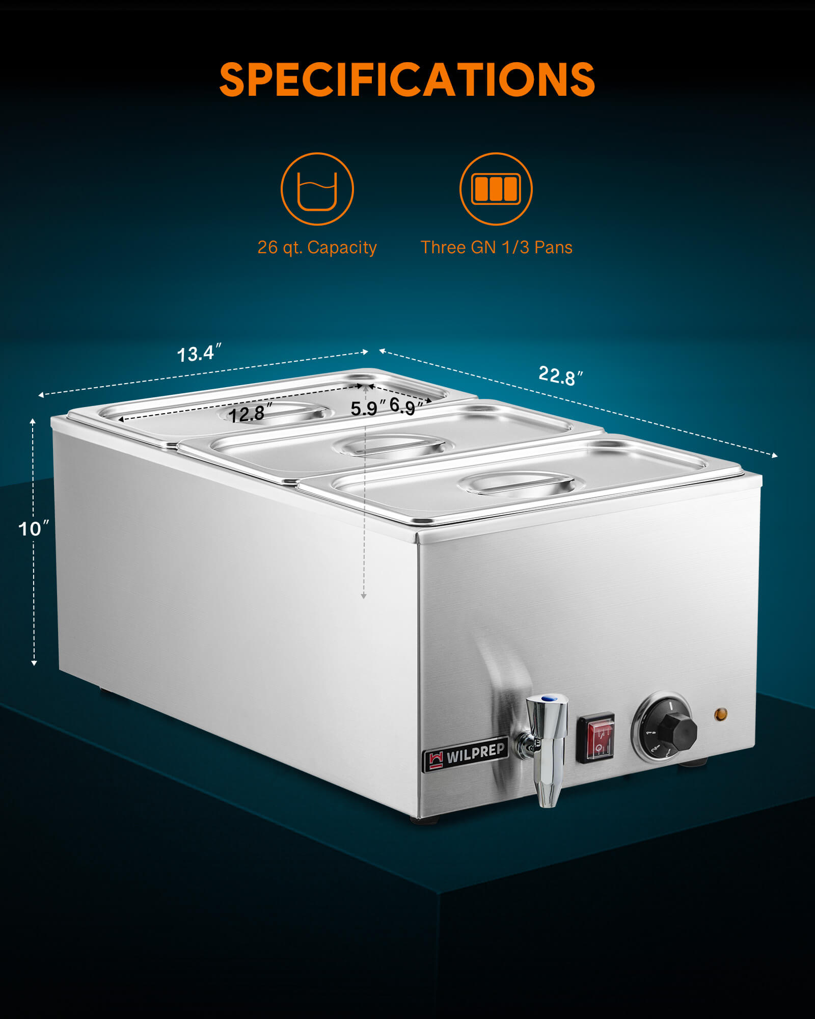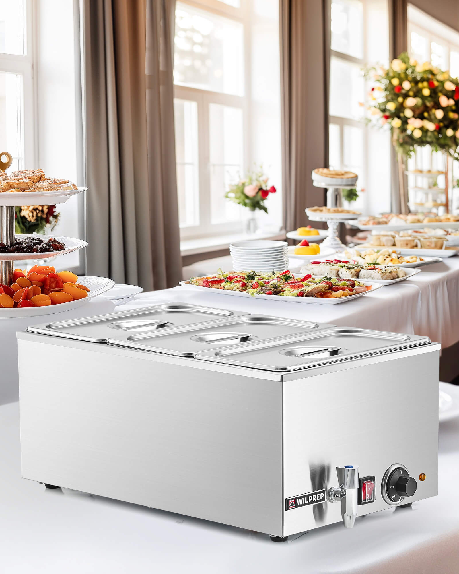 - Keep Your Food Warm: Wilprep's 1200W commercial food warmer, equipped with a stainless steel U-shaped heating tube, ensures rapid and uniform heating, keeping your dishes fresh and ready to serve for extended periods.