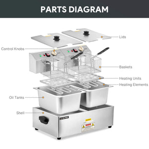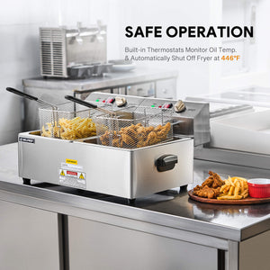 1600W Electric Deep Fryer, 20 lb with dual baskets