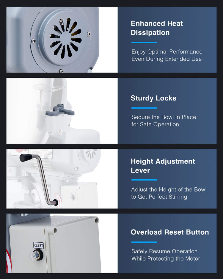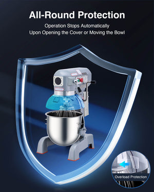- Safer, More Reliable Operation: The protective cover is designed to shield your creations from anything spilling in, while also triggering auto-stop when opened. Plus, overload protection automatically stops this stand mixer if overloaded, ensuring a secure baking experience.