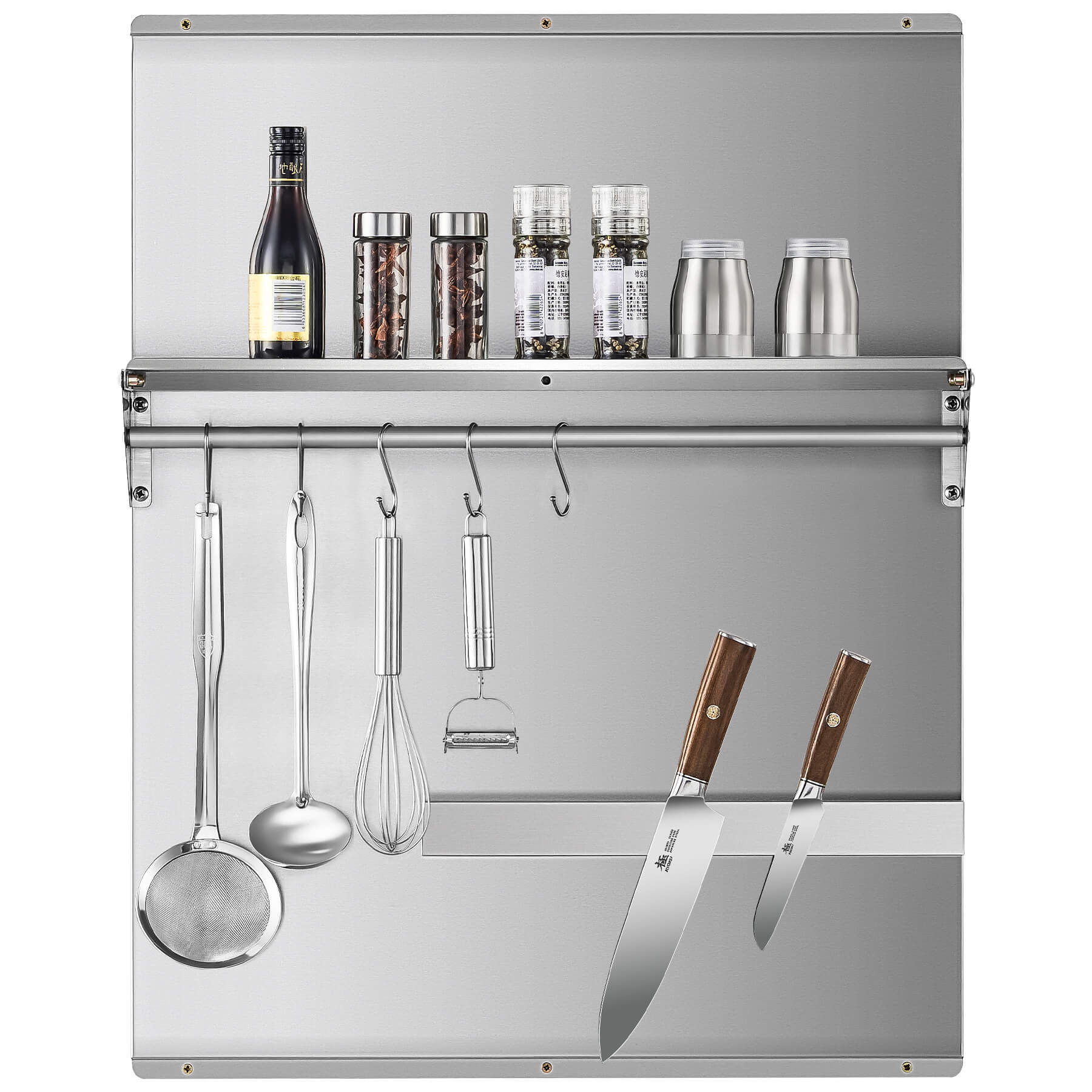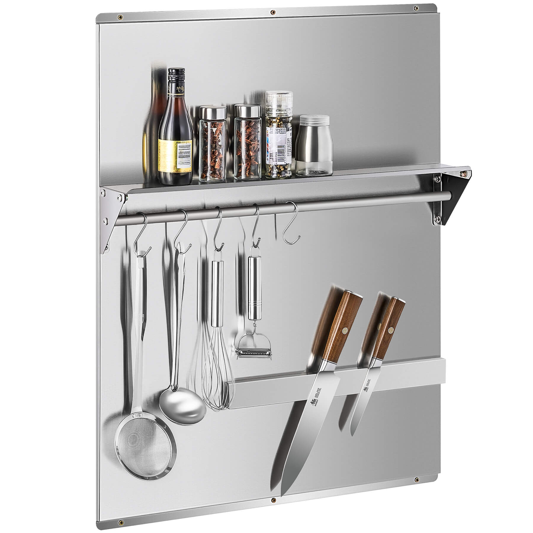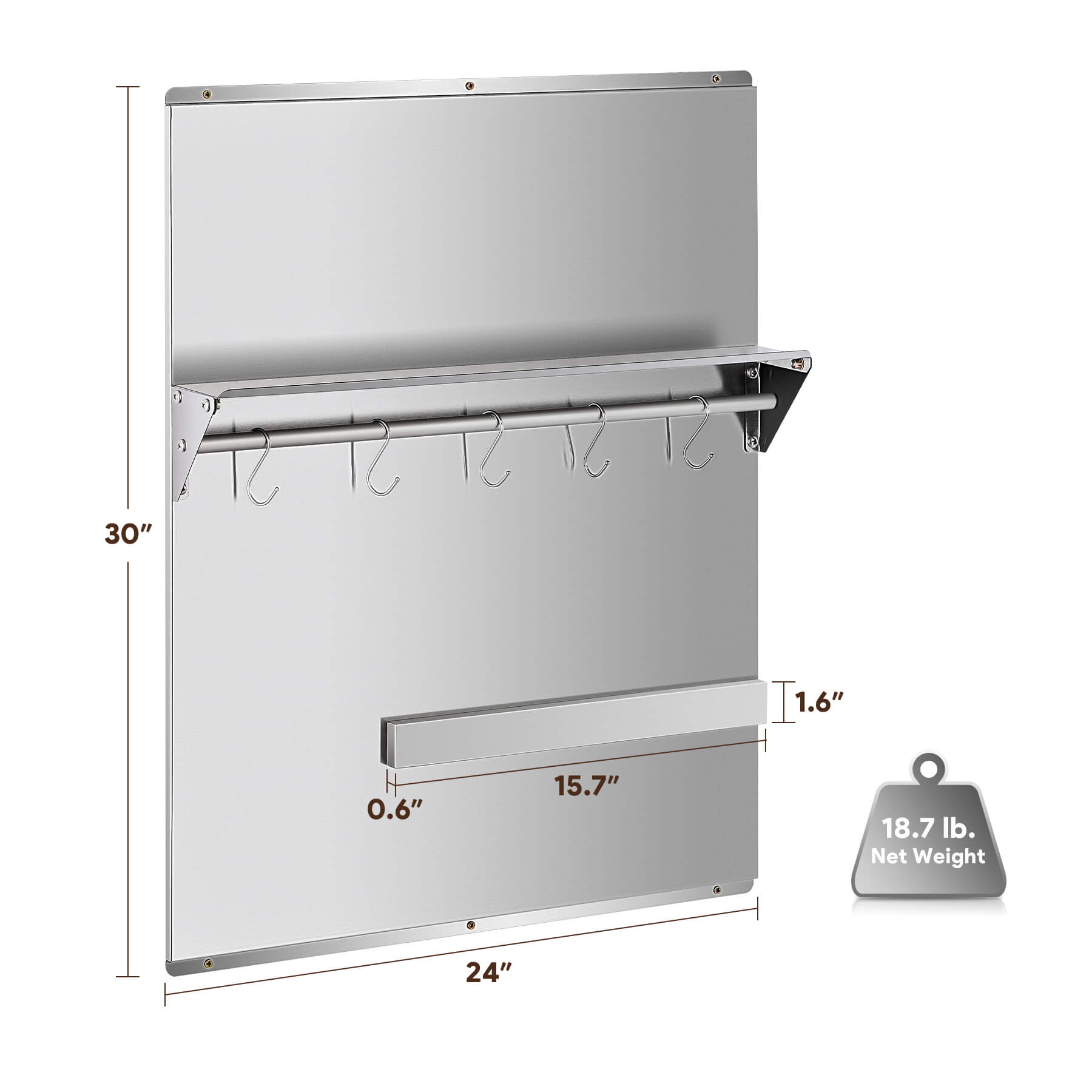 24"x30" Stainless Steel Backsplash with Storage Shelf & Magnetic Knife Rack