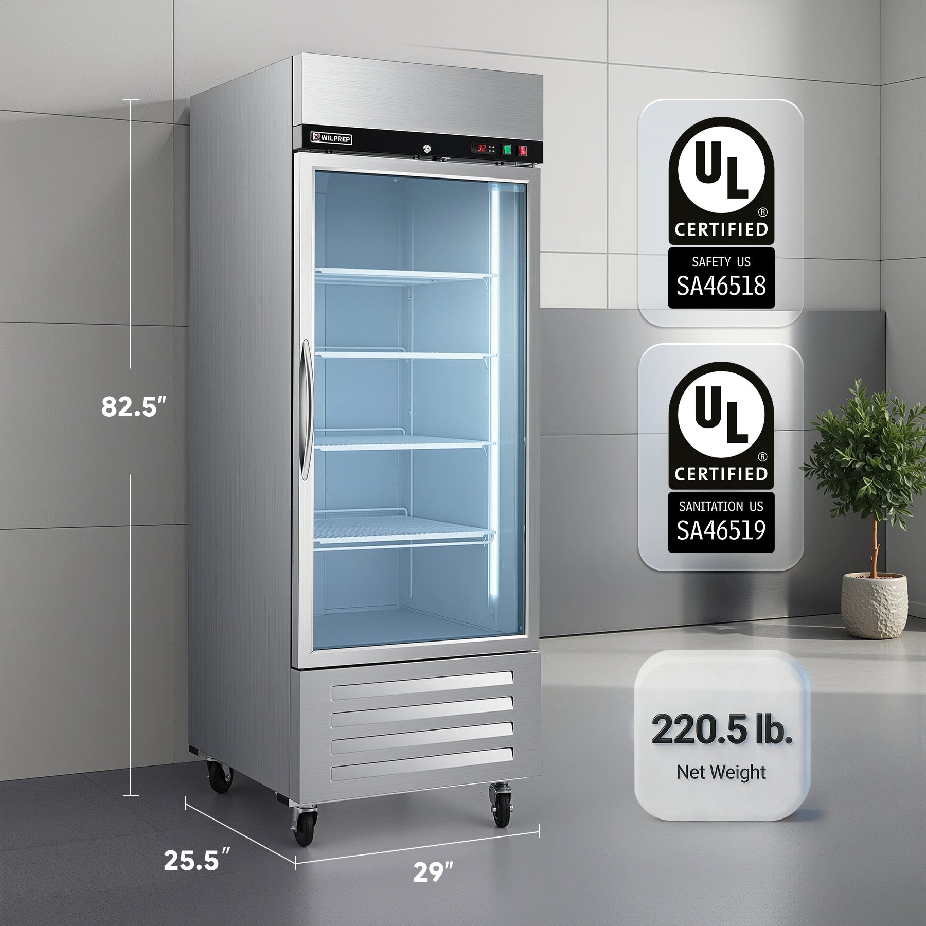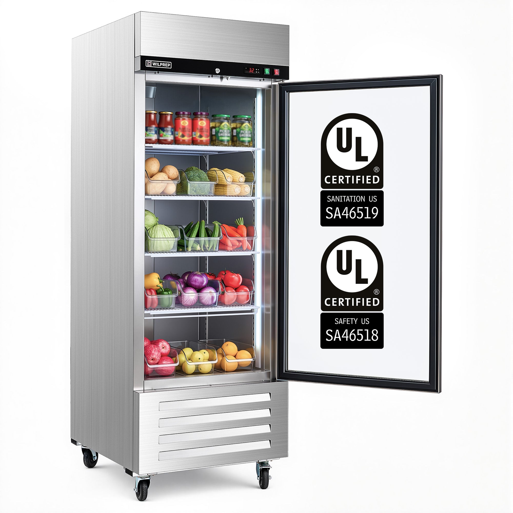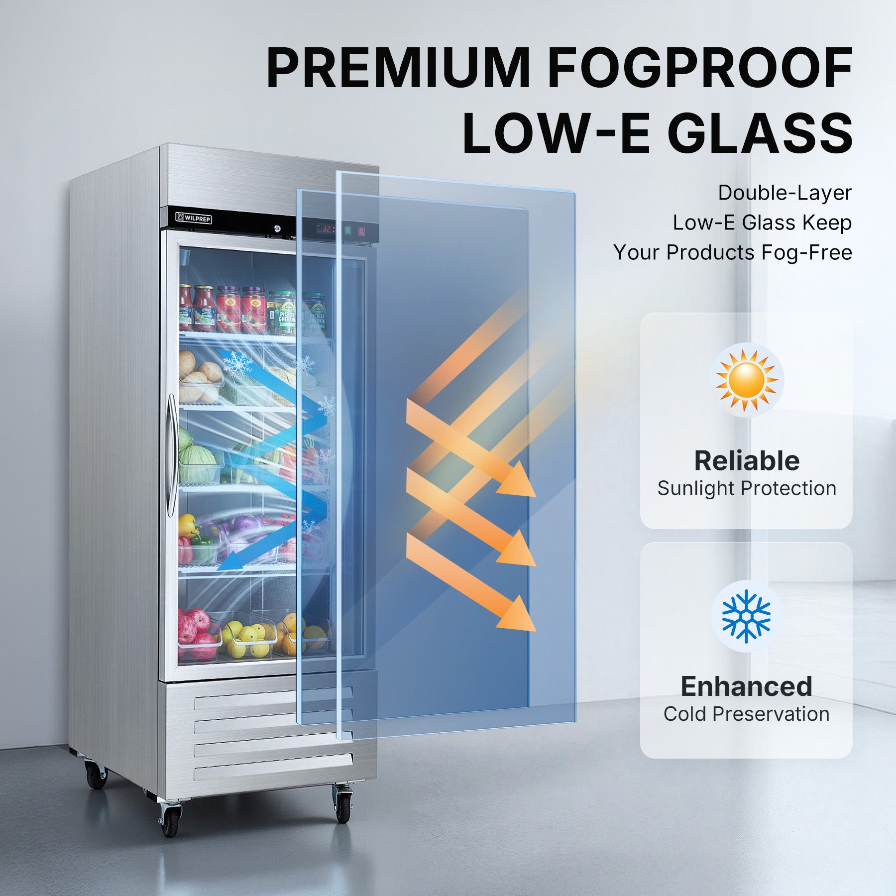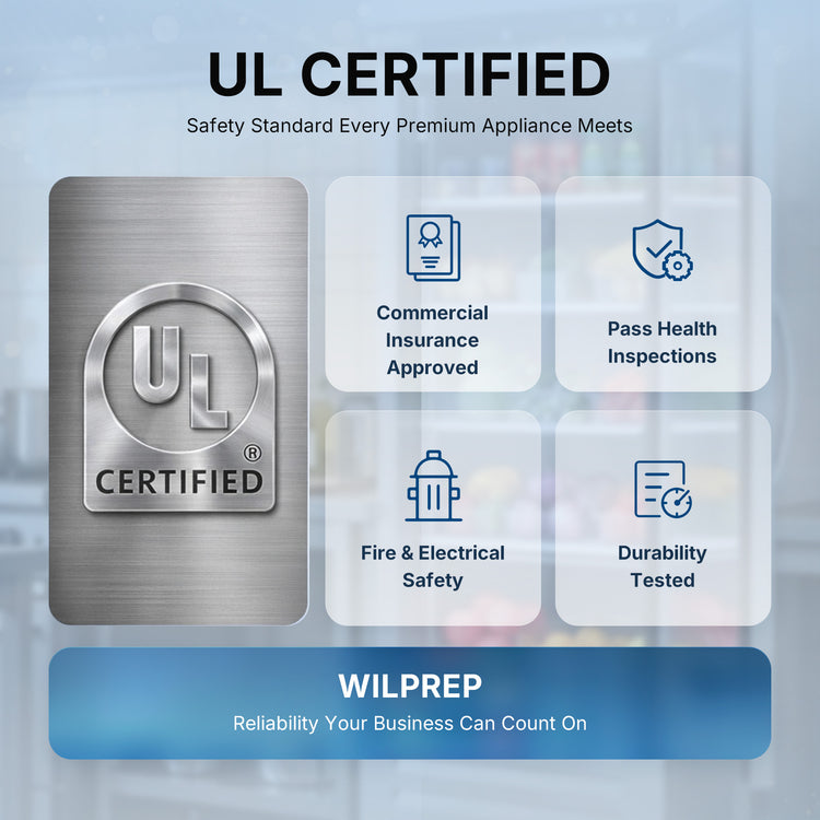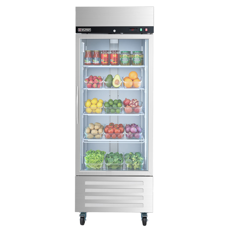 Mega Capacity Fridge for All Needs: Wilprep's 27" single glass door commercial refrigerator offers a volume of 18.7 cu. ft. and a temperature range of 32-50°F, letting you properly store and showcase drinks, fruits, and more merchandise for your business.