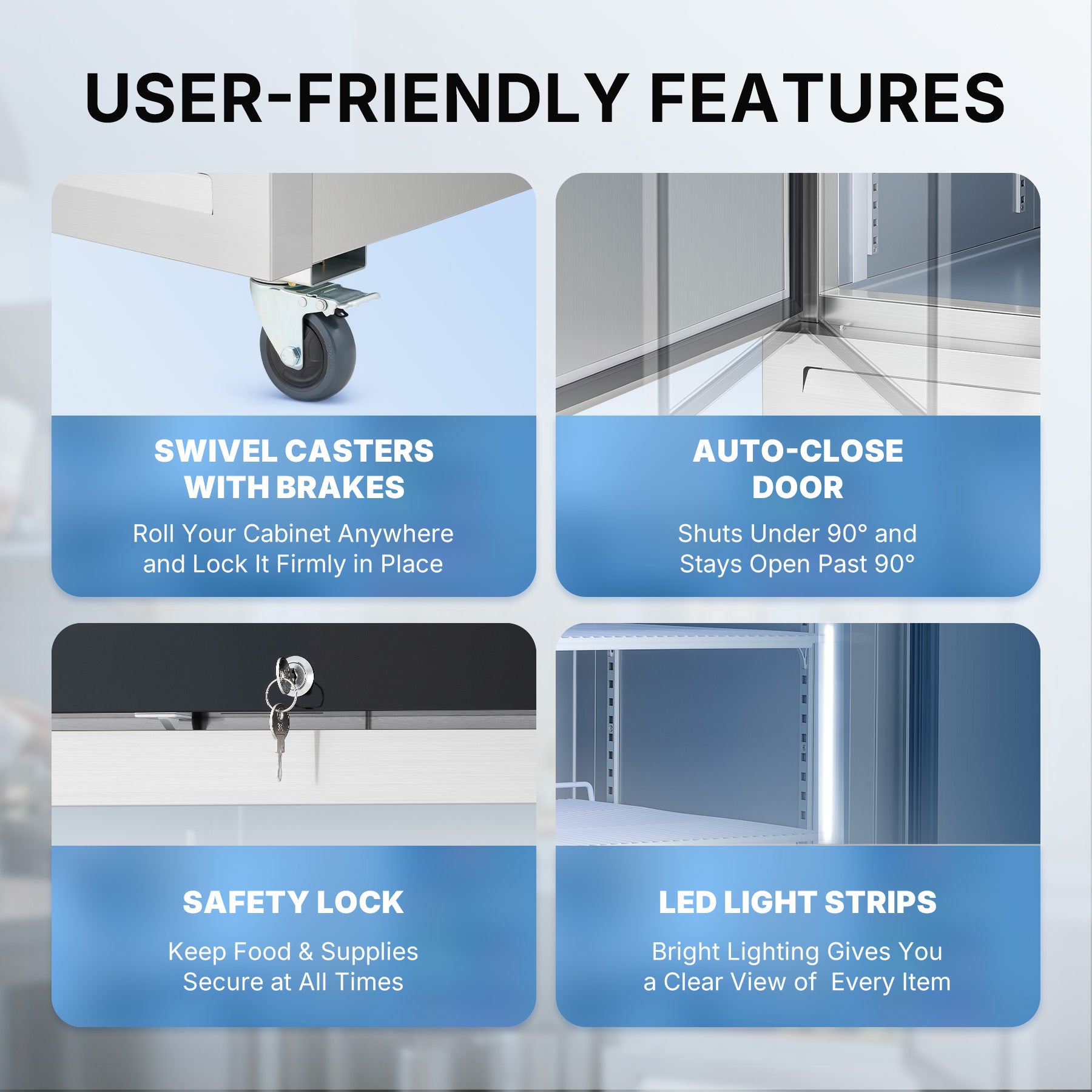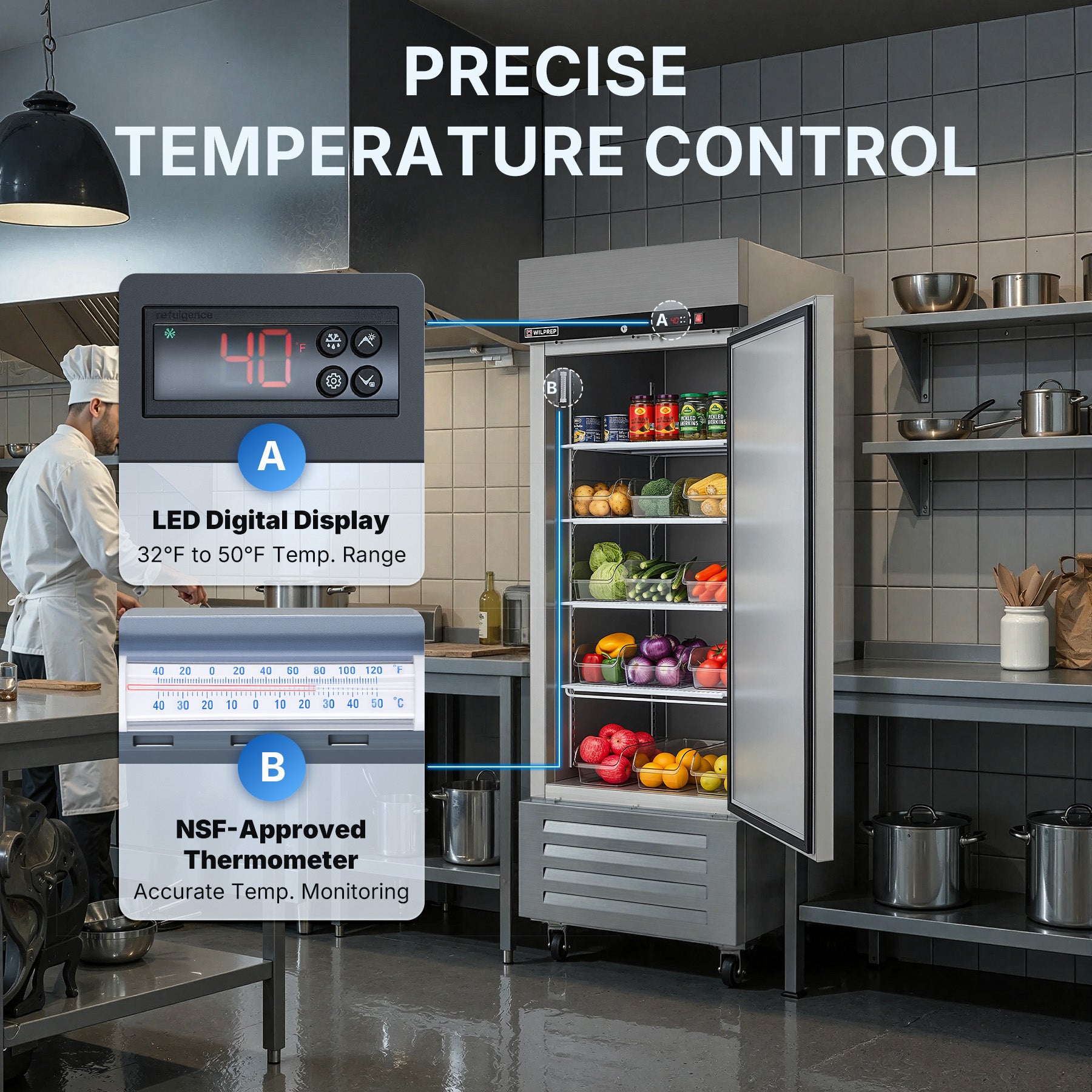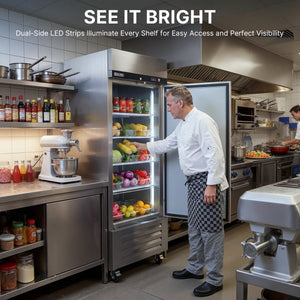 Certified Safety: Built with food-safe 430 stainless steel and UL-certified, our cabinet fridge meets top safety and sanitation standards. From cafes, bars, and restaurants to convenience stores, it keeps drinks cold and your mind at ease.