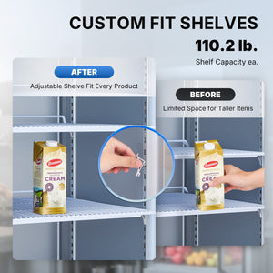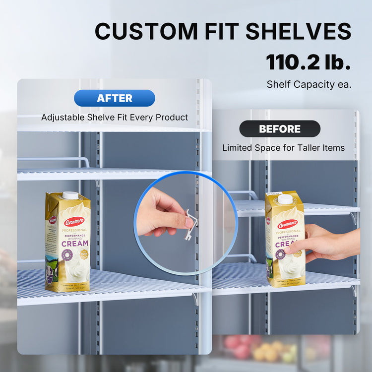 Pick Your Perfect Setup: Pick from single, double, or triple doors with 4, 8, or 12 adjustable shelves, giving you complete control to organize beverages, snacks, or large ingredients exactly how your kitchen or business needs.