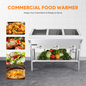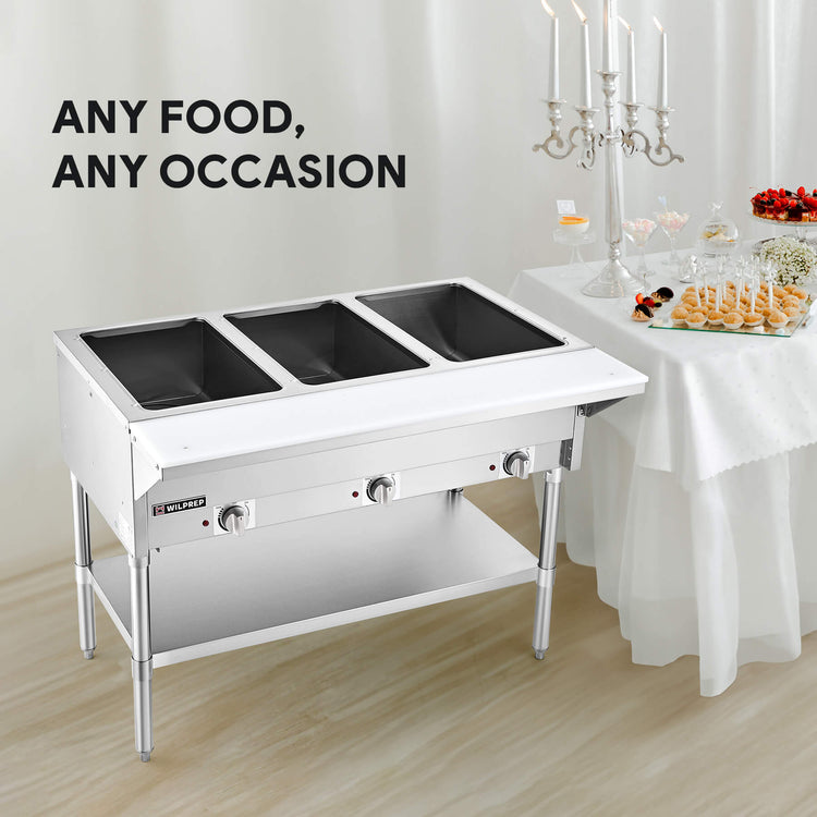 3 Well Electric Steam Table with Storage Shelf 1500W