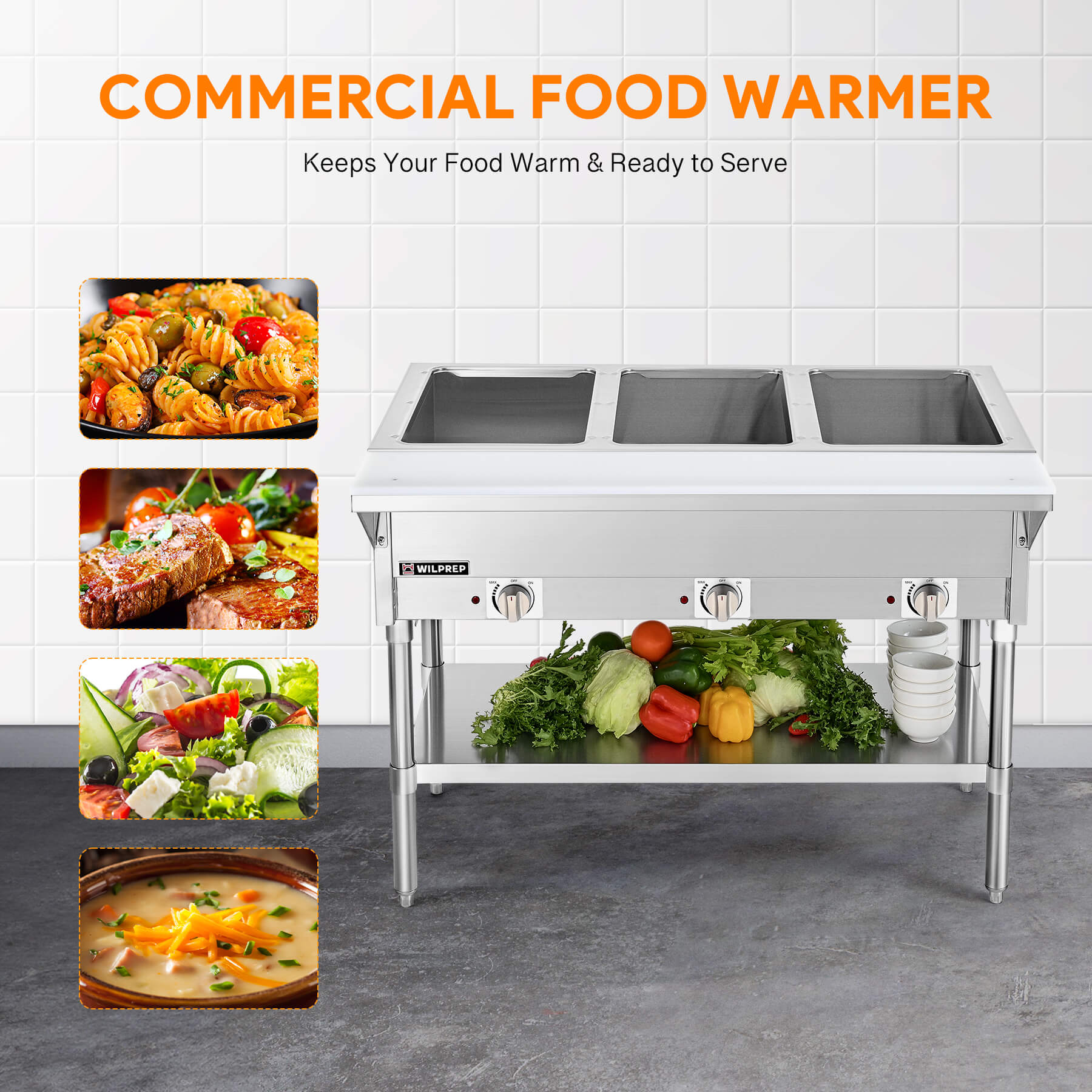 Maintain Optimal Taste: Wilprep's 1500W electric food warmer features three 304 stainless steel heating tubes designed for dry use, providing fast and even heating to keep your dishes warm, fresh, and ready to serve.