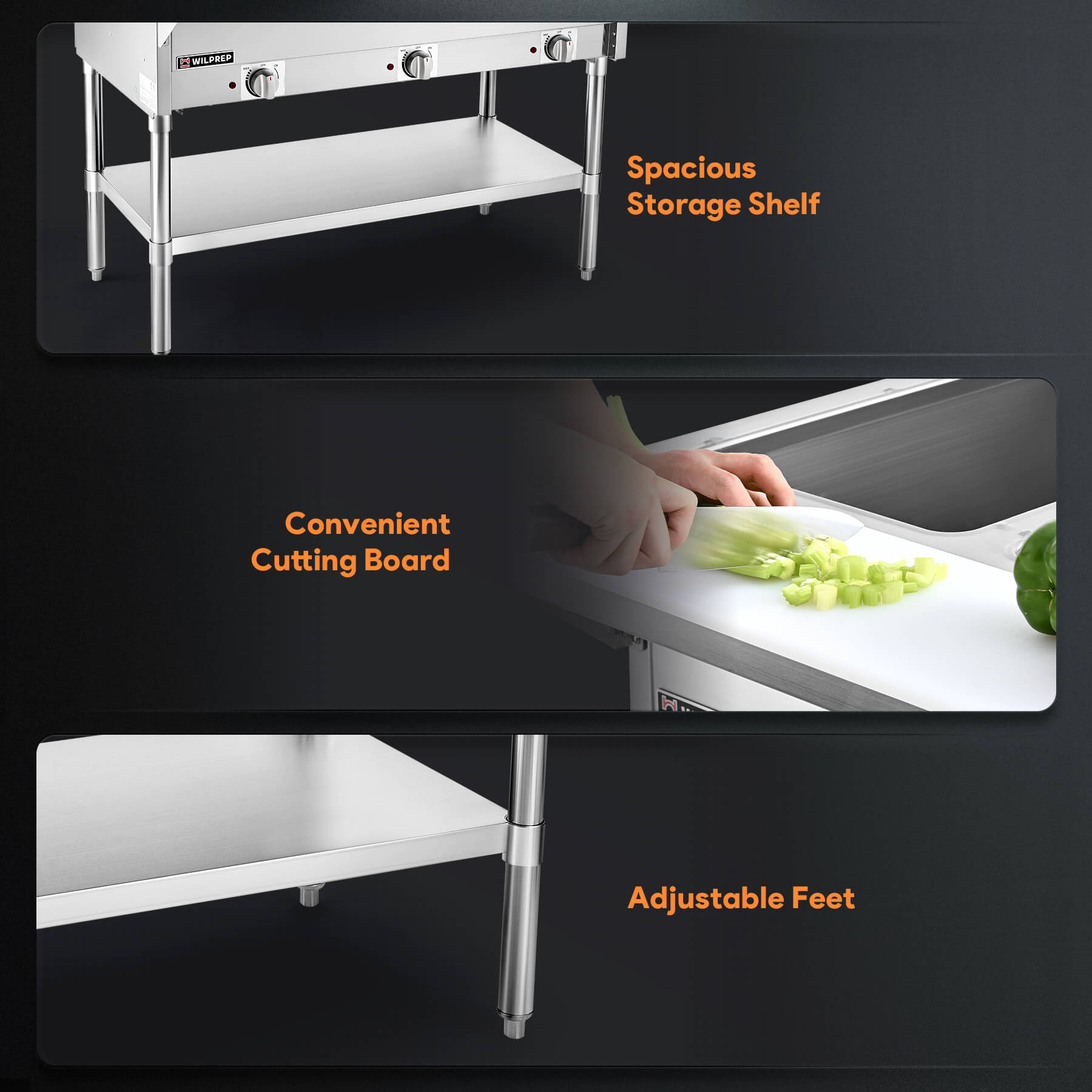 Efficient Organization: Simplify your setup with an accessible storage shelf, ideal for utensils, cookware, and more. Whether you’re catering an event, running a bustling restaurant, or hosting a buffet, this food warmer enhances your workflow seamlessly.