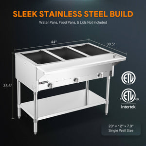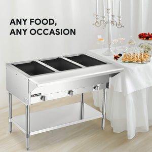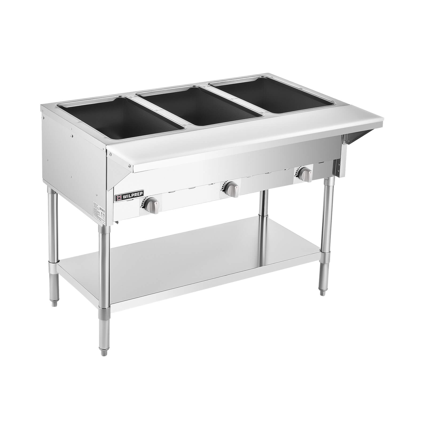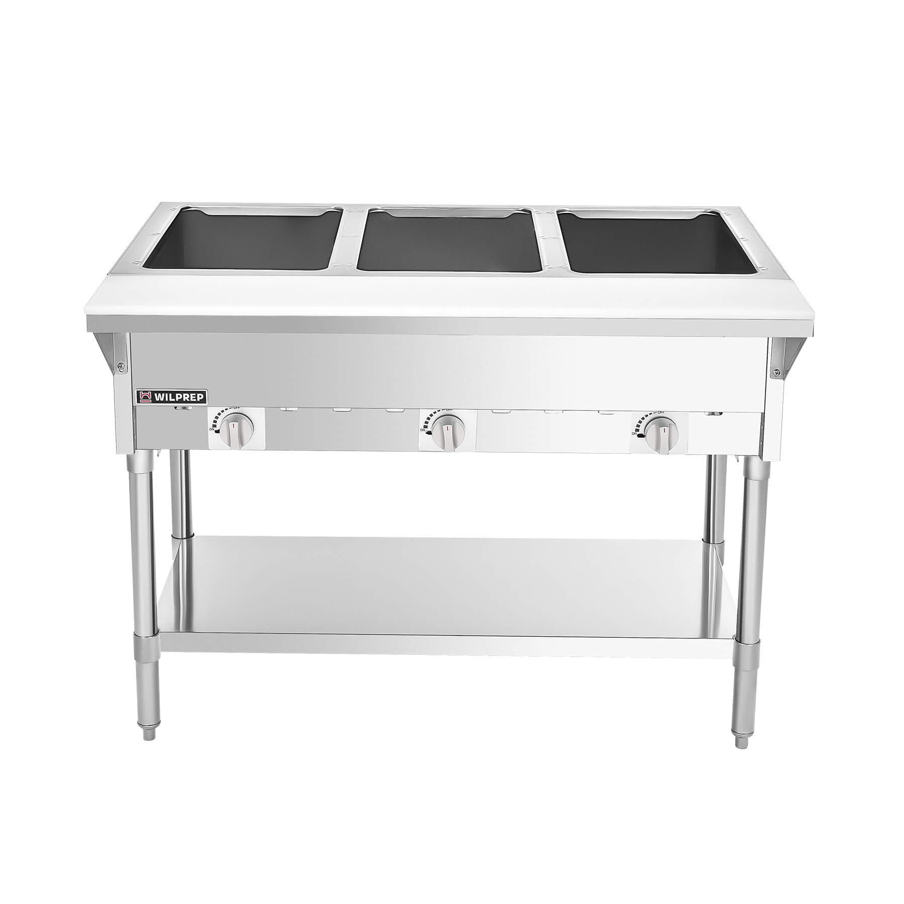 3 Well Gas Steam Table with Storage Shelf 10,500BTU