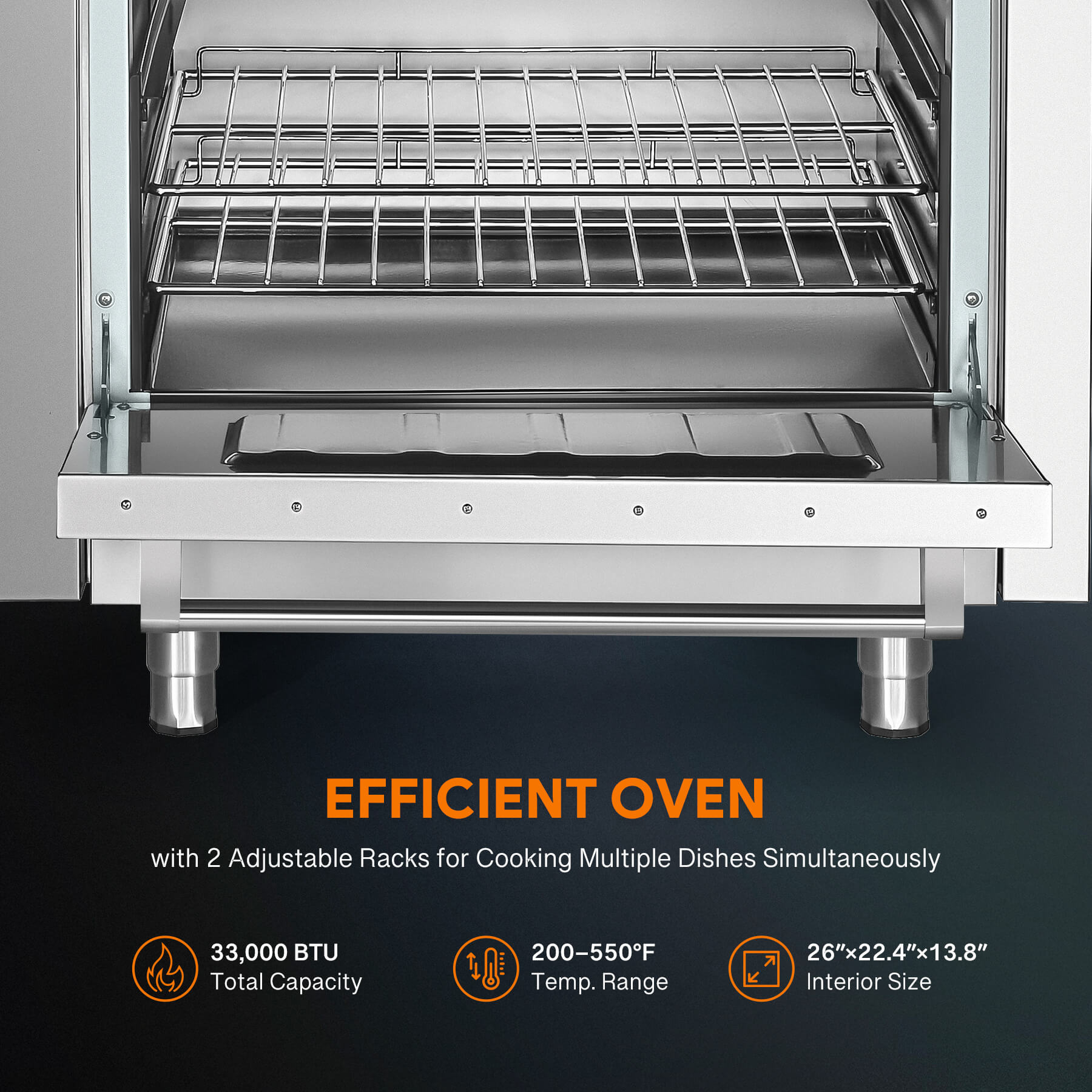 No-Fuss Cleanup: Certified by CSA for safety, this stainless steel gas stove with oven is highly resistant to corrosion and stains. The addition of a detachable drip tray ensures quick and hassle-free post-cooking cleanup.
