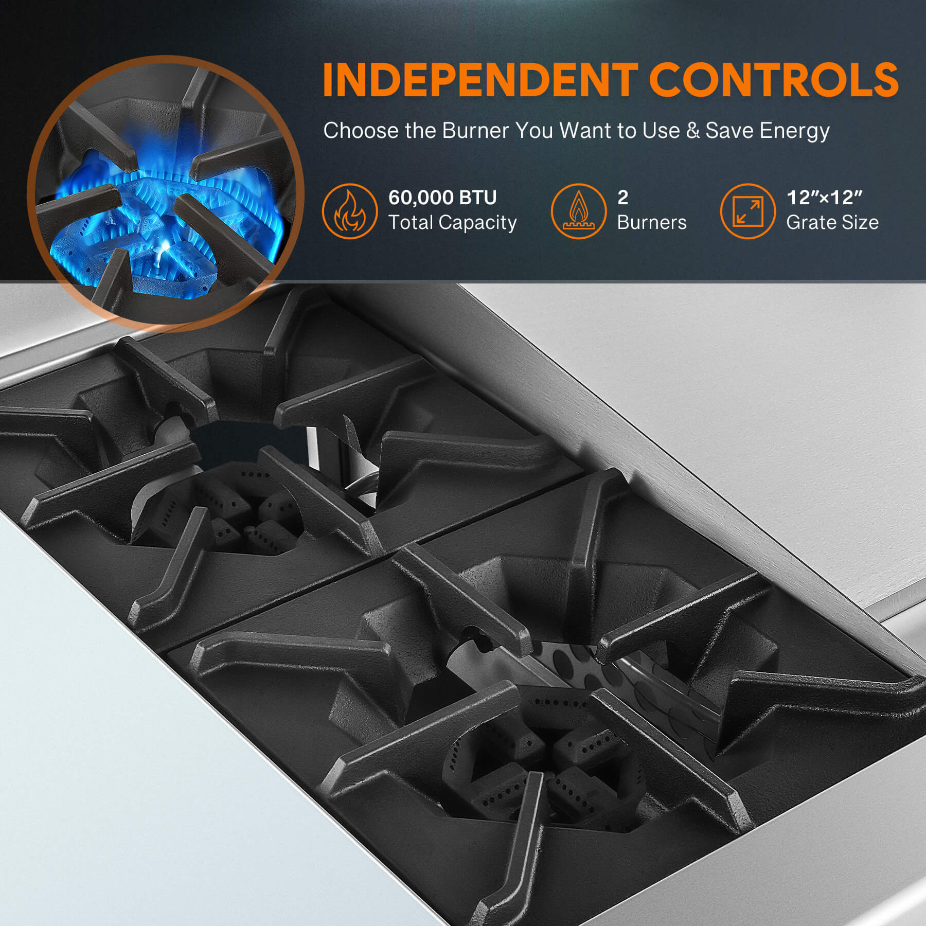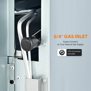 Convertible to Natural Gas: Seamlessly switch from propane to natural gas with our versatile gas cooktop. Equipped with a 3/4" gas inlet and a conversion kit, it's ready for your preferred fuel. Professional assistance recommended for the conversion process.