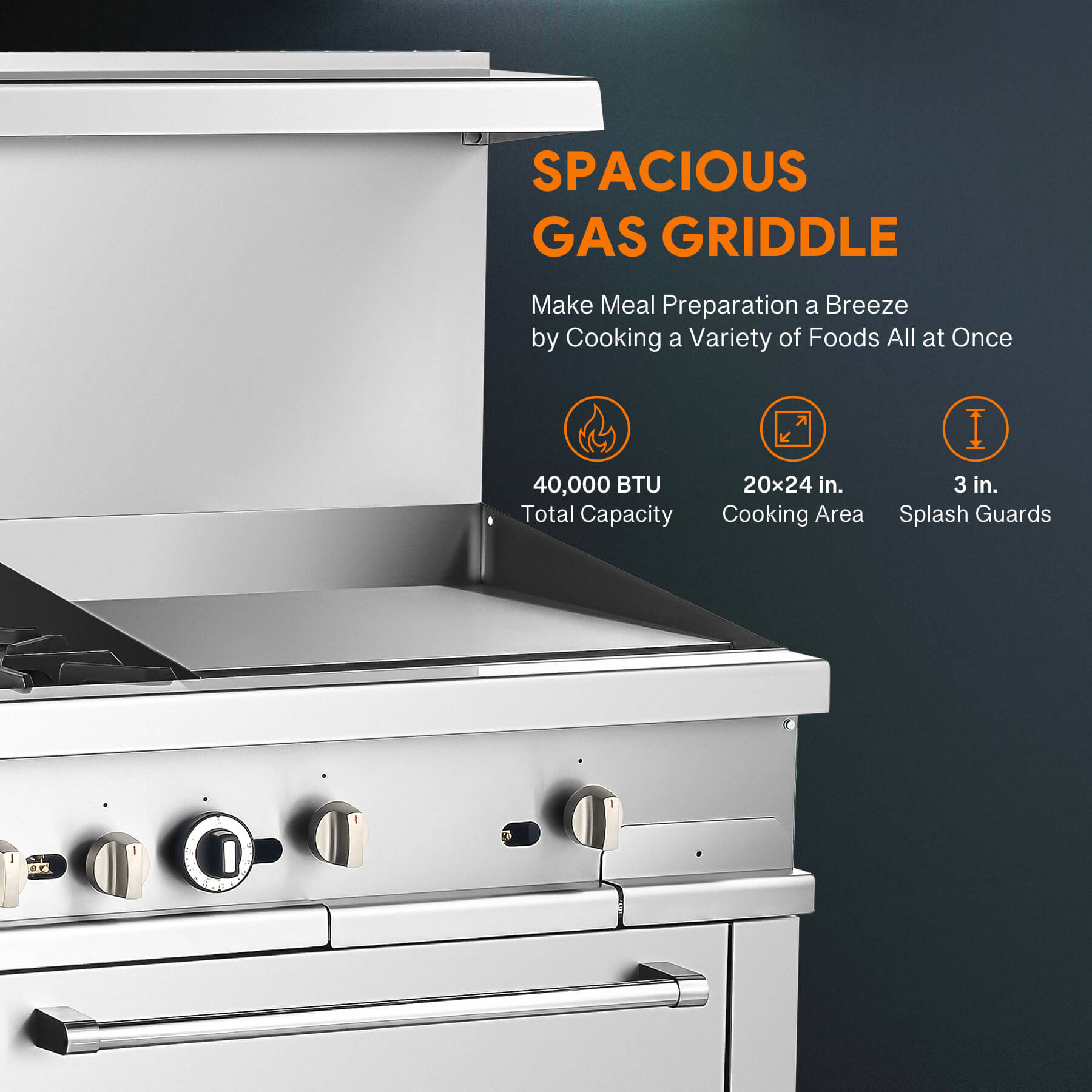 36" Natural Gas Range 2 Burner with Single Oven& 24" Griddle, 3-in-1 Combo -133,000 BTU