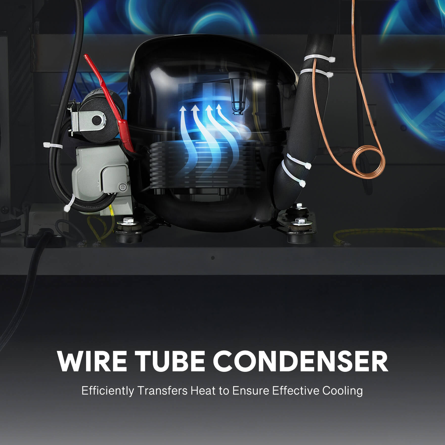 Durable & Easy to Clean: Built with robust 430 stainless steel and reinforced with double-layer tempered glass, this air curtain fridge offers lasting durability and effortless cleaning for a pristine display of your valuable treats.