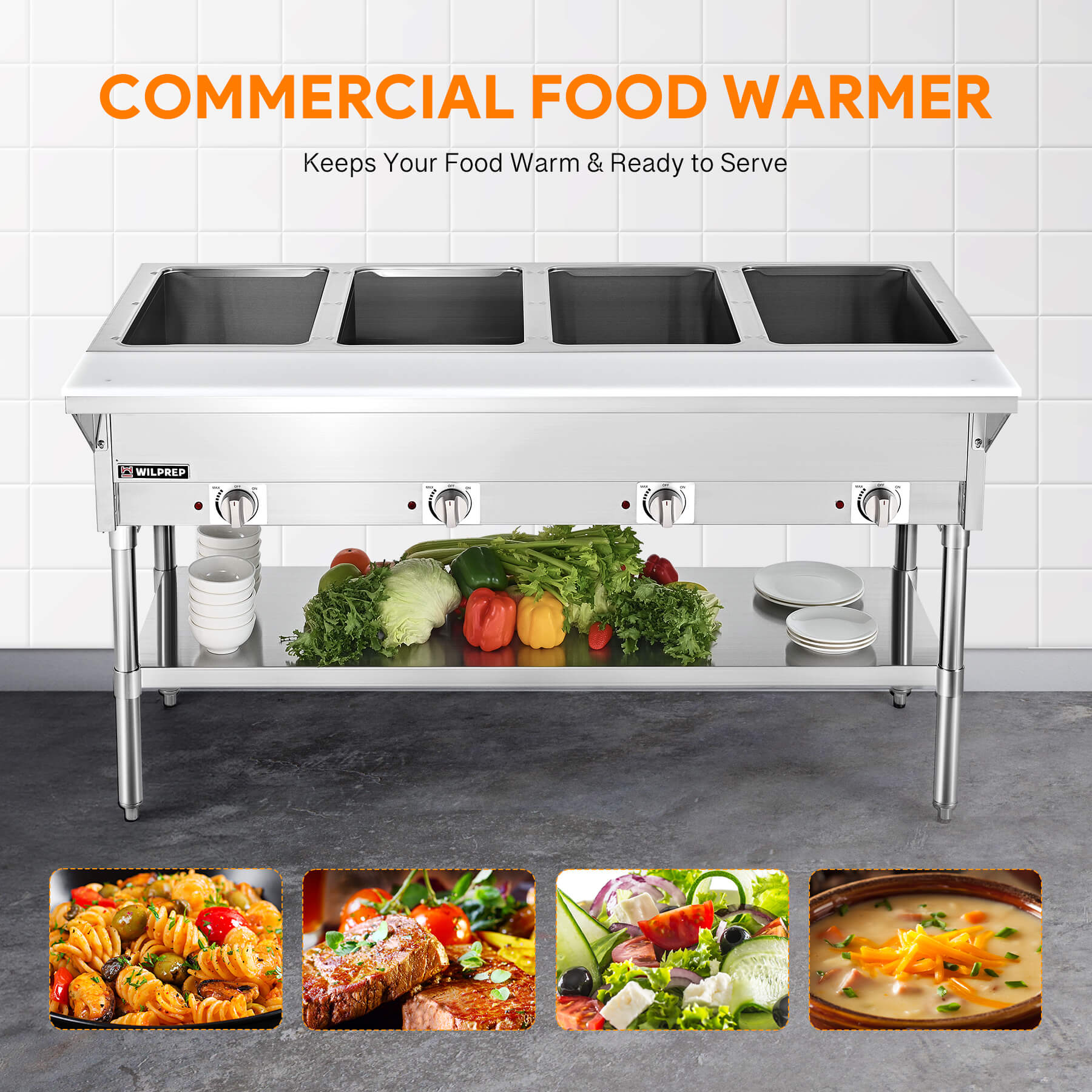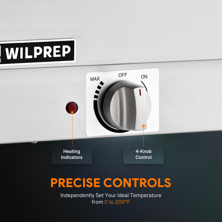 - Maintain Optimal Taste: Wilprep's 2000W electric food warmer features four 304 stainless steel heating tubes designed for dry use, providing fast and even heating to keep your dishes warm, fresh, and ready to serve.