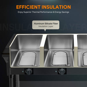 - Superior Insulation: Enjoy prolonged warmth for your meals thanks to our commercial food warmer's aluminum silicate fiber insulation layer, keeping your dishes hot and inviting while operating with minimal electricity usage.