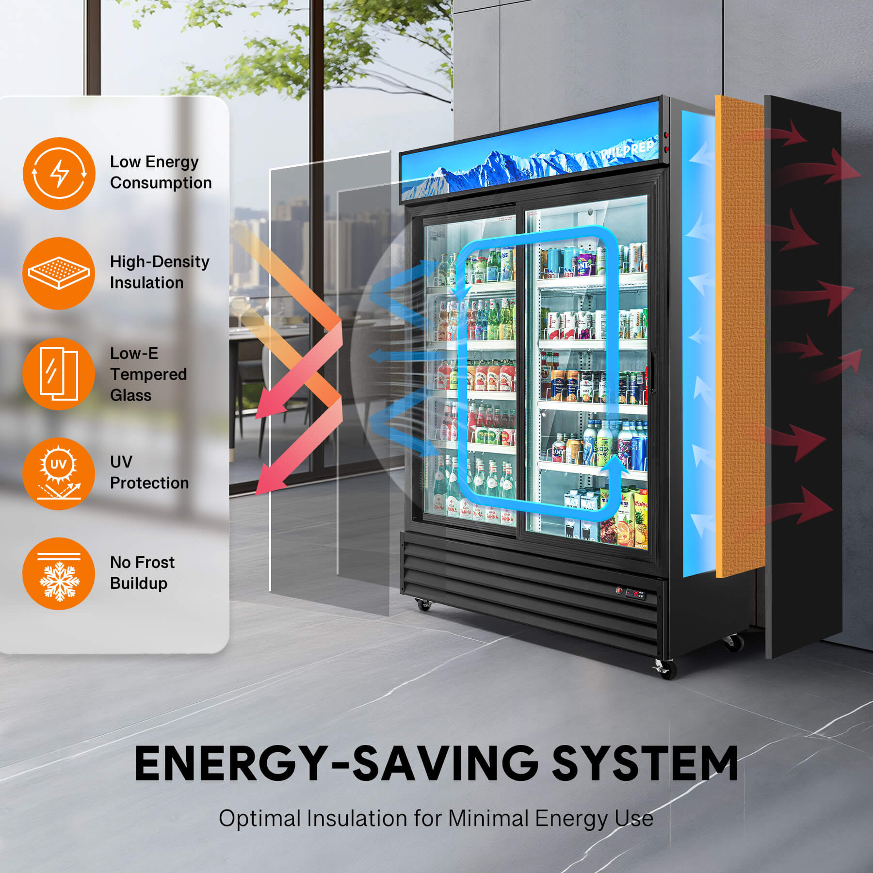 Perfectly Chilled Drinks: Keep your drinks perfectly chilled and displayed with Wilprep's ETL listed display refrigerator. Its advanced air cooling system ensures fast, even cooling without frost buildup, while the Embraco compressor with R290 refrigerant provides high efficiency and energy savings for long-term reliability.