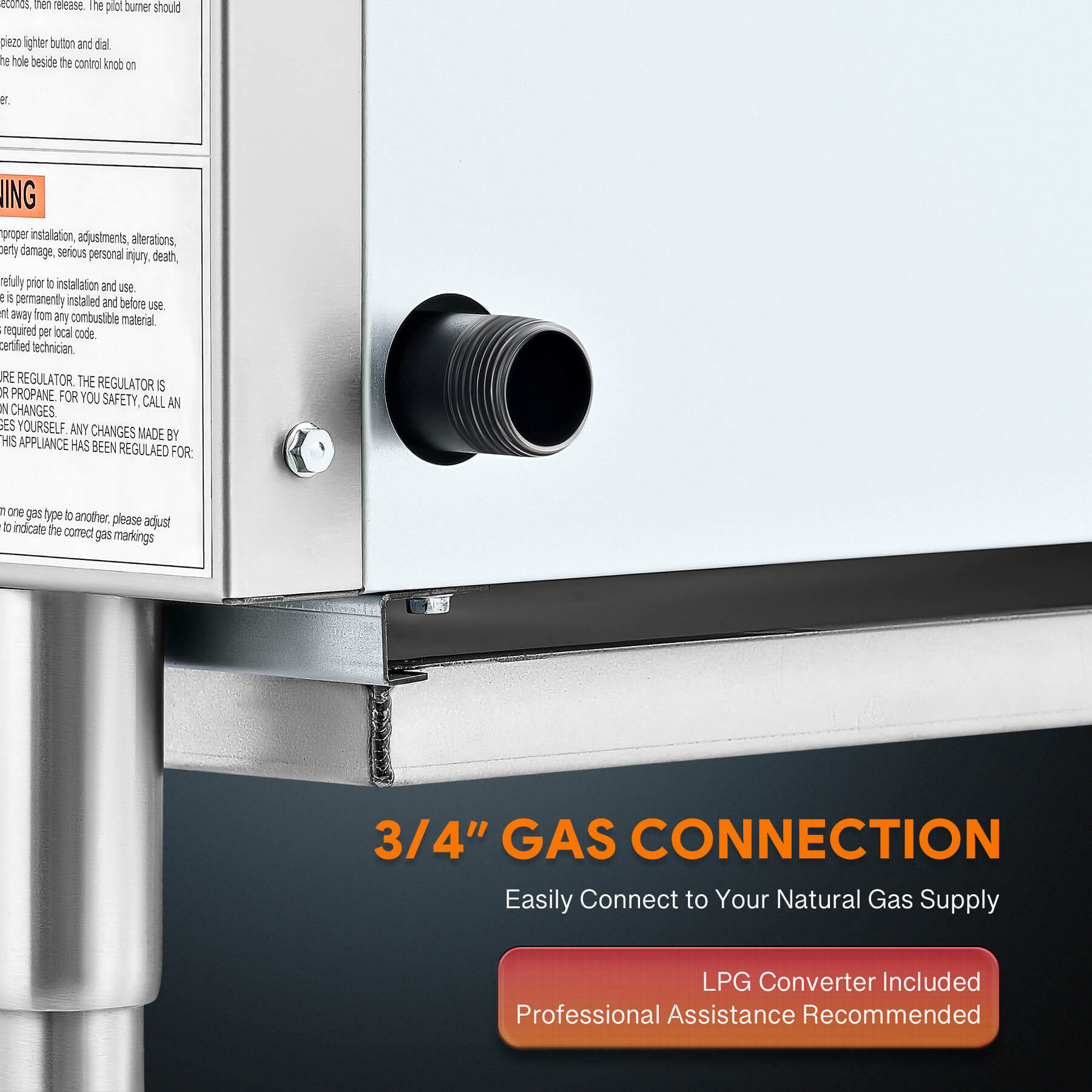 With a 3/4 in. gas inlet and included pressure regulator, connecting to your natural gas supply is simple. Plus, we've included LPG orifices for easy switching to your preferred gas type.