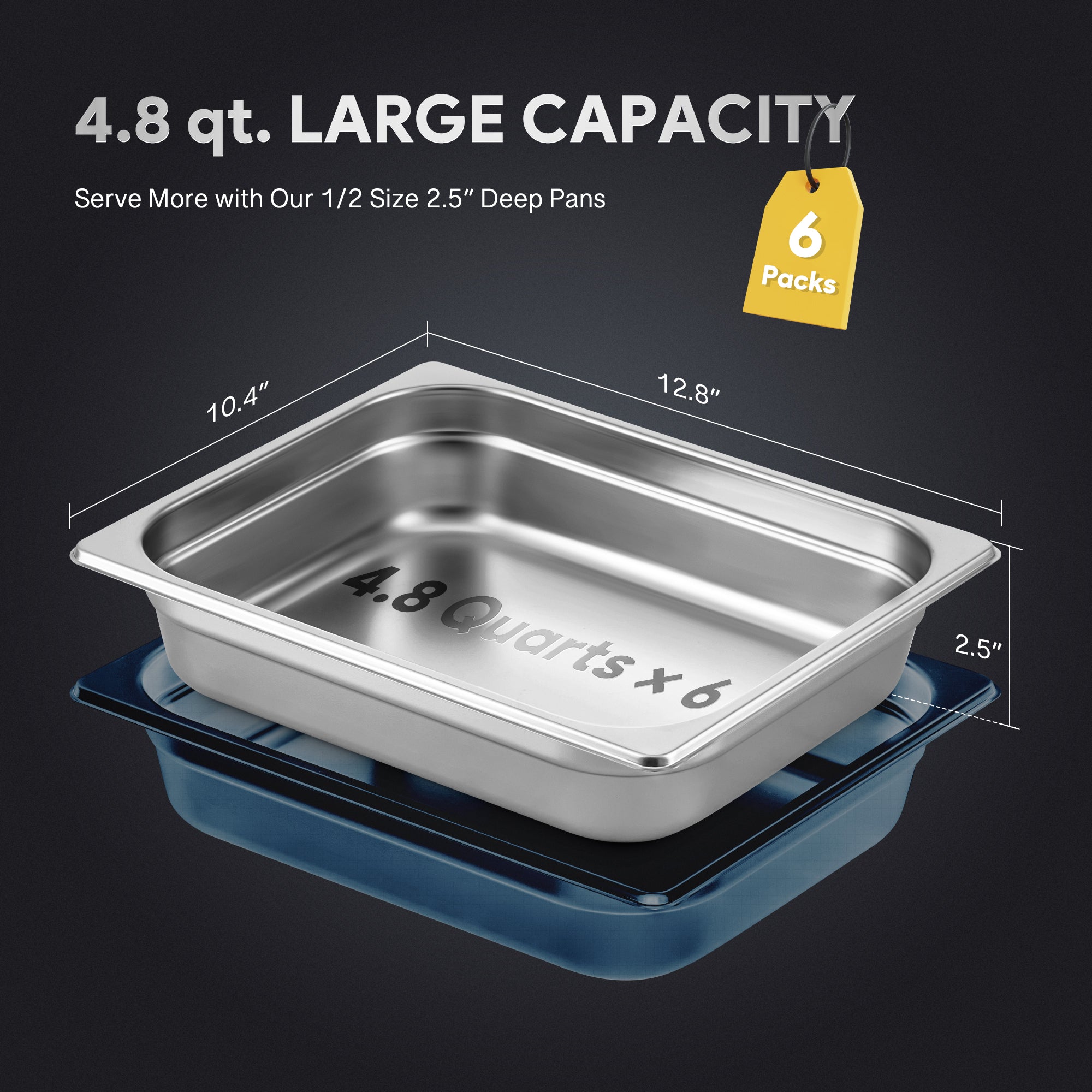 Perfect for Busy Hosts: With a generous 4.8 qt. capacity and 2.5 in. depth, these 1/2 size pans provide ample space for preparing, storing, and serving everything from delicious entrees to tempting sides—perfect for catering, events, and buffets.