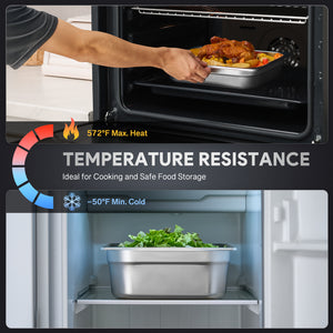 Food-Grade and NSF-Listed: Made from food-grade stainless steel, these hotel pans are NSF certified to ensure safe food prep and storage, free from rust and corrosion. The 0.6 mm thickness resists warping, even under extreme heat.