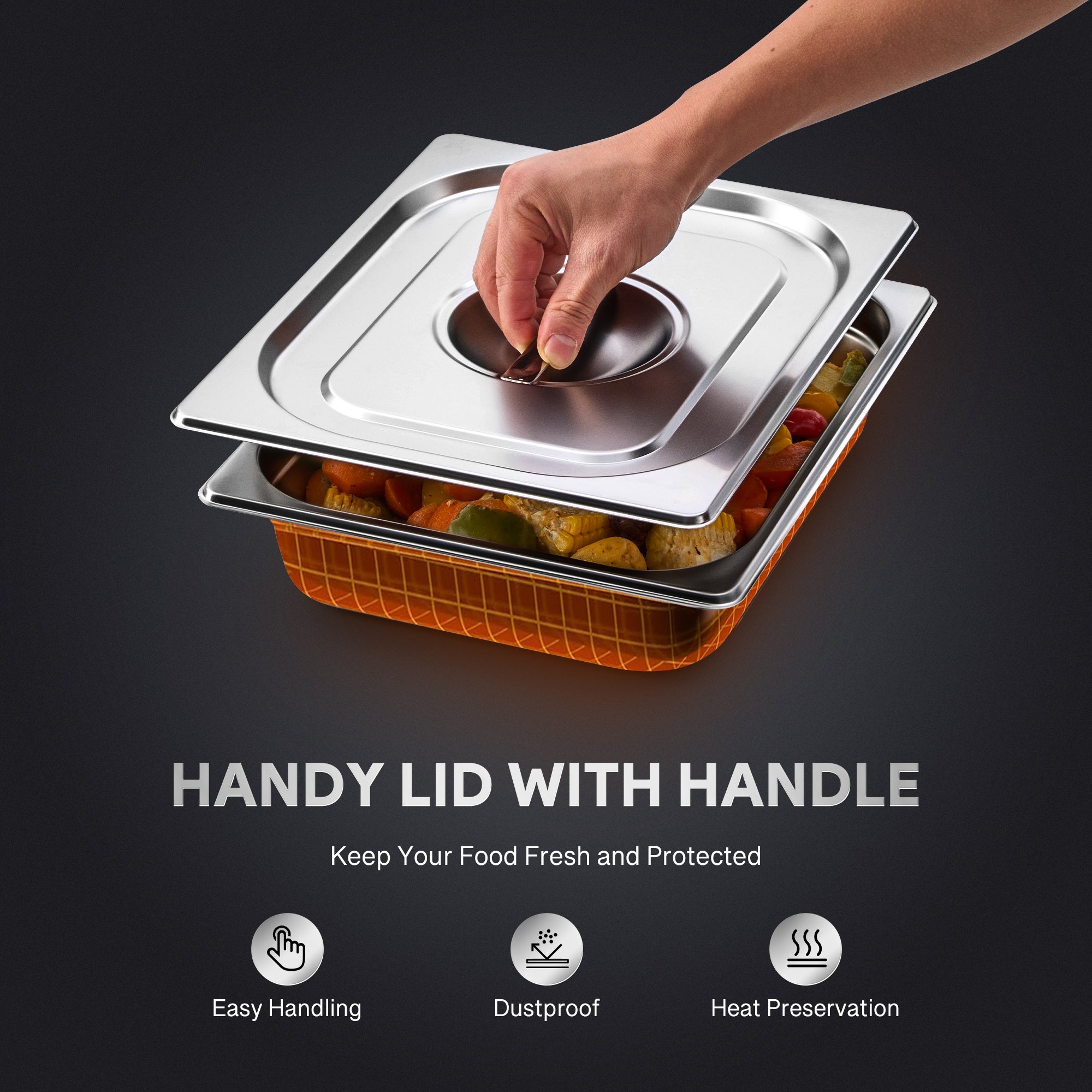 Essential Catering Pans: Make hosting easy with Wilprep's 6-pack of 1/2 size hotel pans with lids. These durable pans keep multiple dishes organized and ready to serve at any occasion, while the handy lids lock in freshness and flavor for easy transport and storage.