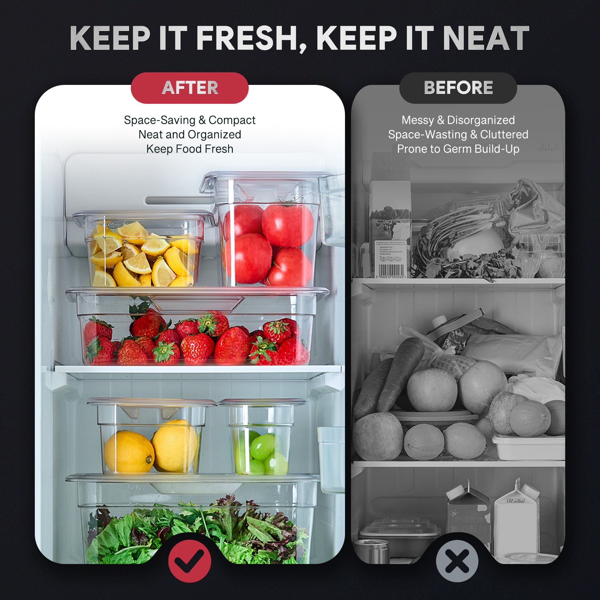 One Pan, Endless Uses: Whether you're organizing fresh ingredients in the fridge, prepping meals for the week, or transporting food to buffets, picnics, or food trucks, these commercial food storage containers handle it all with ease
