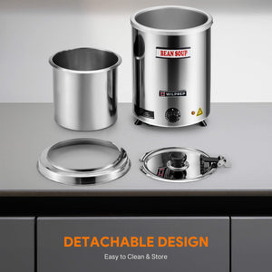 Much Easier Cleanup: This commercial soup warmer streamlines maintenance with a detachable hinged lid, collar, and inner pot, all dishwasher safe for quick and easy cleaning. The pot's stainless steel interior also makes manual cleanup a breeze!