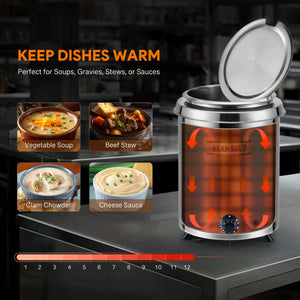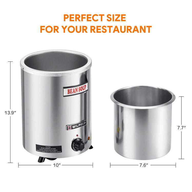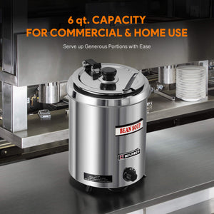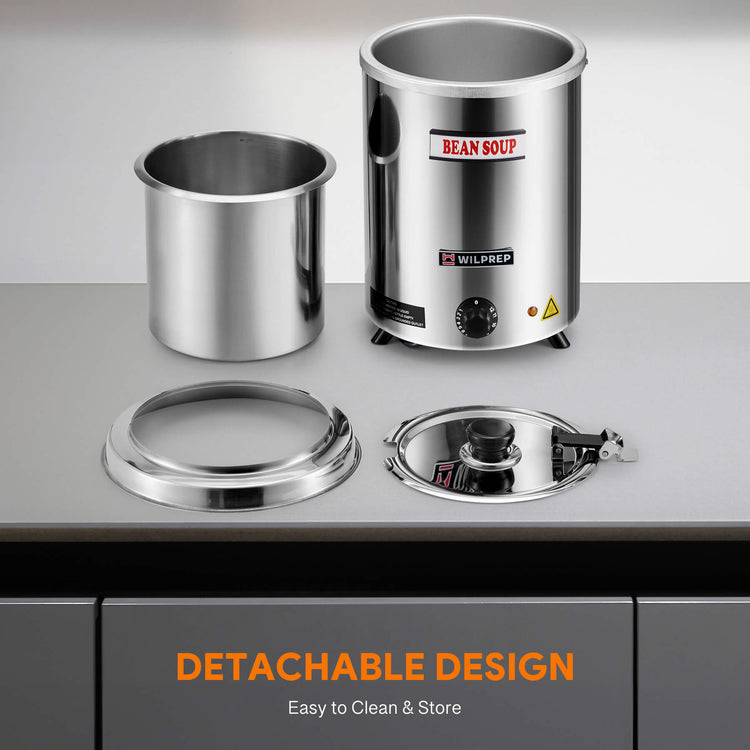 Feed a Crowd: With a spacious 6 quart (5.7 L) capacity and 300W heating power, Wilprep's soup kettle warmer ensures your soups and sauces are always ready for serving no matter the occasion, be it a bustling restaurant or a cozy family gathering.