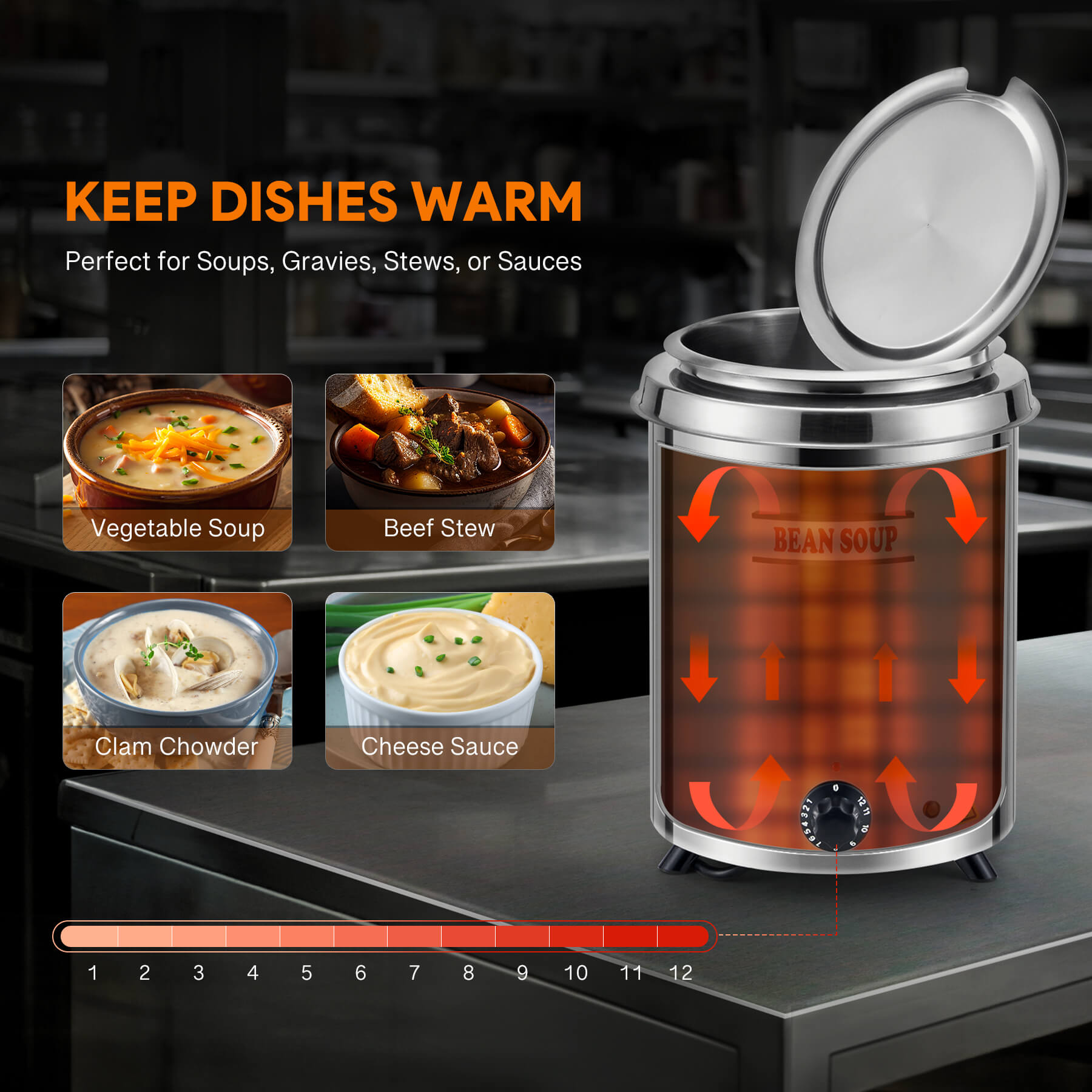 Simple Temperature Controls: Toggle through 12 temperature settings (up to 200°F) simply at the twist of a knob. From soups and gravies to stews and sauces, you can easily achieve the perfect warmth for every dish.