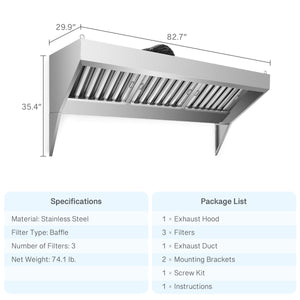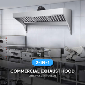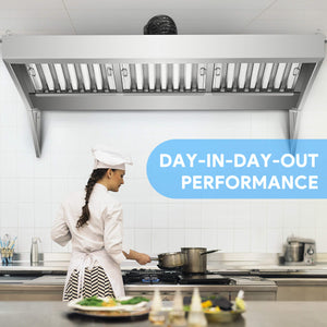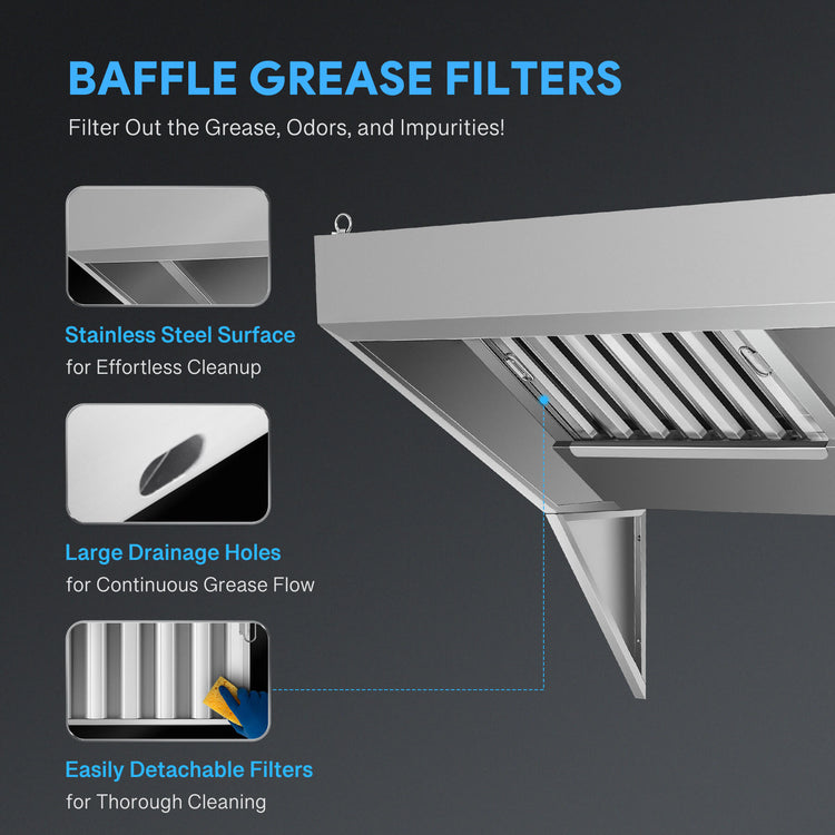 - Built for Durability: Crafted from premium quality stainless steel, our commercial exhaust hood offers exceptional heat and corrosion resistance. Its solid weld construction ensures long-lasting durability and effortless cleaning.