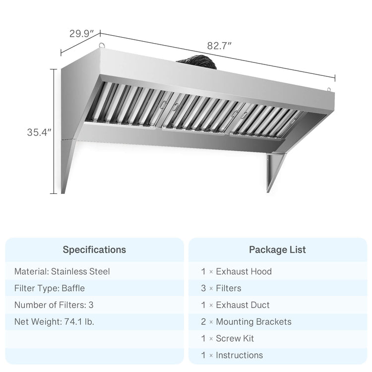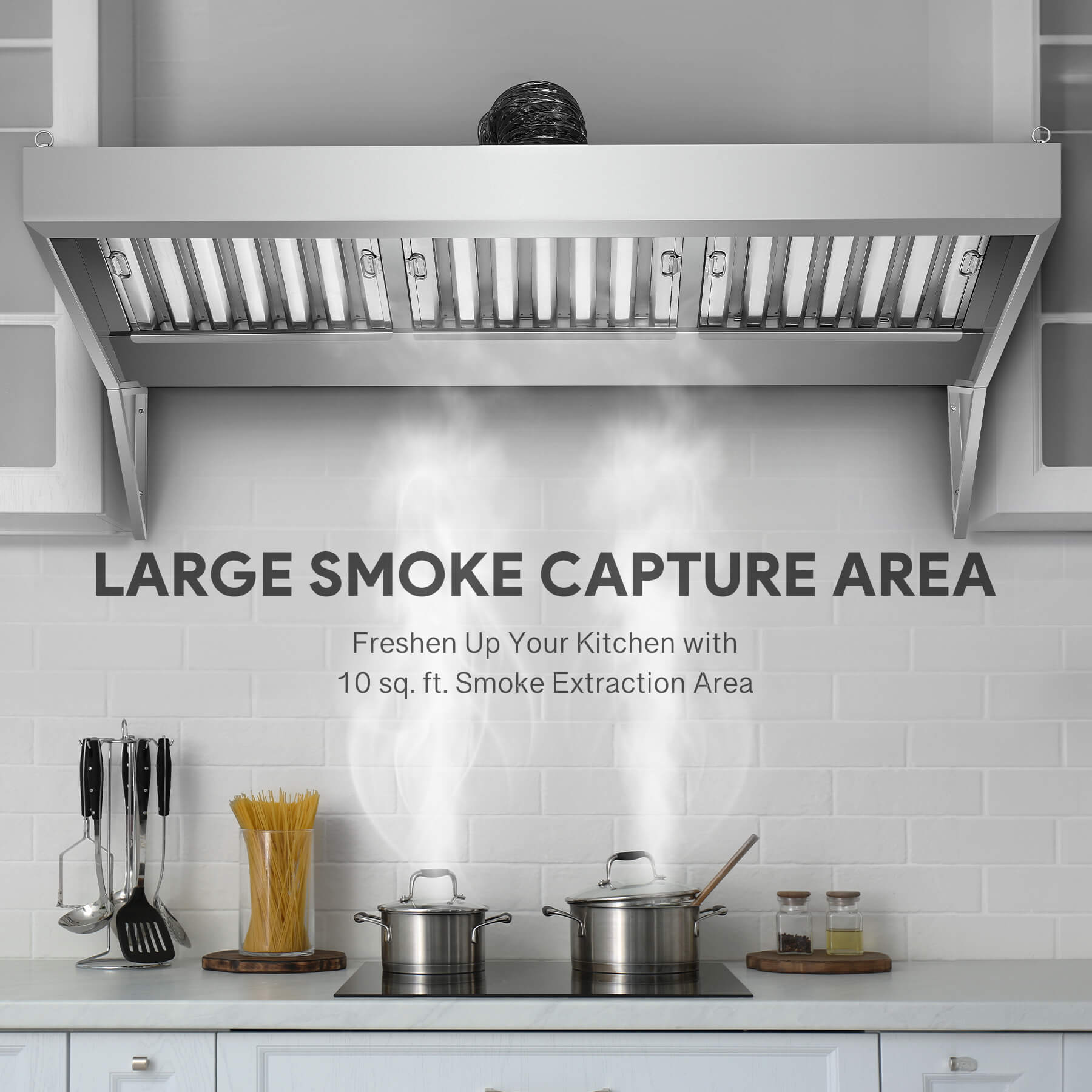 - Cleaner Air, Better Cooking: With an expansive 10 sq. ft. smoke capture area, Wilprep's 7 ft. exhaust hood lets you breathe easy while you cook, keeping your kitchen air clean and fresh, so you can enjoy a hassle-free culinary experience.