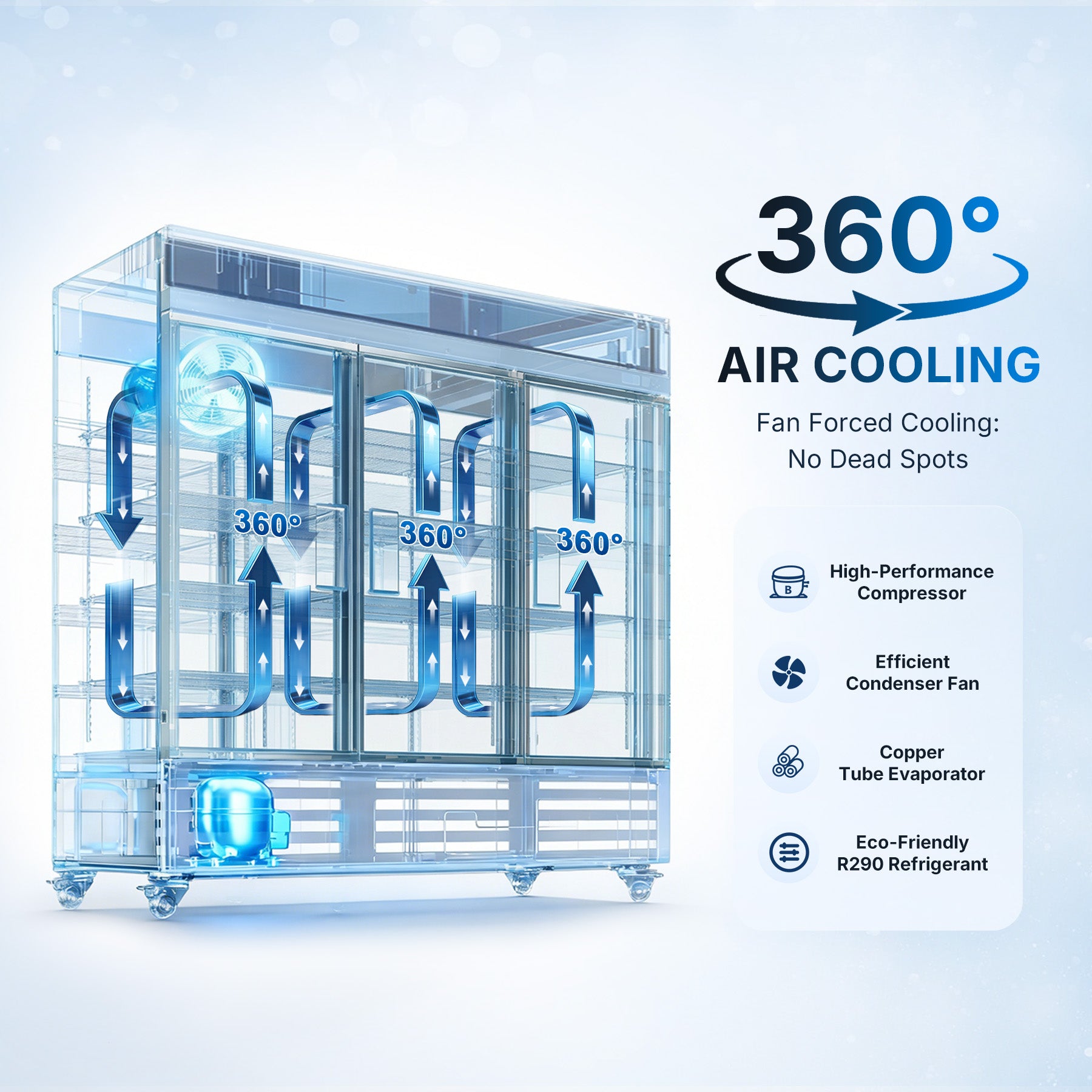Certified Safety: Built with food-safe 430 stainless steel and UL-certified, our cabinet fridge meets top safety and sanitation standards. From cafes, bars, and restaurants to convenience stores, it keeps drinks cold and your mind at ease.