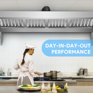 - Wide Application: Our kitchen exhaust hood is perfect for restaurants, commercial kitchens, RVs, and food trucks. It's designed to handle fryers, skillets, and charcoal grills, all operating at temperatures up to 700°F.