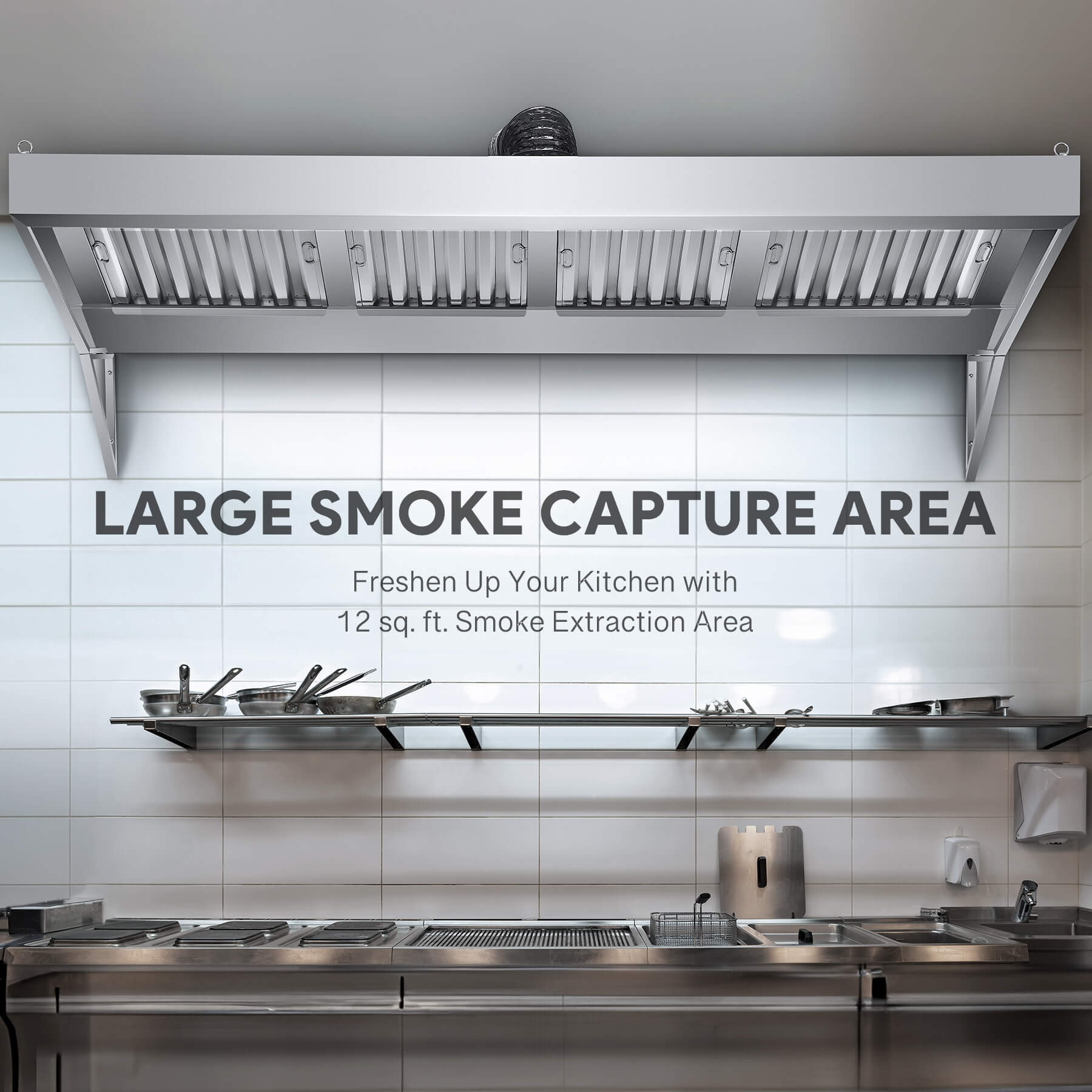 - Cleaner Air, Better Cooking: With an expansive 12 sq. ft. smoke capture area, Wilprep's 9 ft. exhaust hood lets you breathe easy while you cook, keeping your kitchen air clean and fresh, so you can enjoy a hassle-free culinary experience.