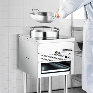 Built to Accommodate: Our gas range features a 13" top ring, concentrating heat for consistent and thorough cooking. Its stable support ensures effortless loading of your woks, stock pots, and other cookware, streamlining your culinary process.
