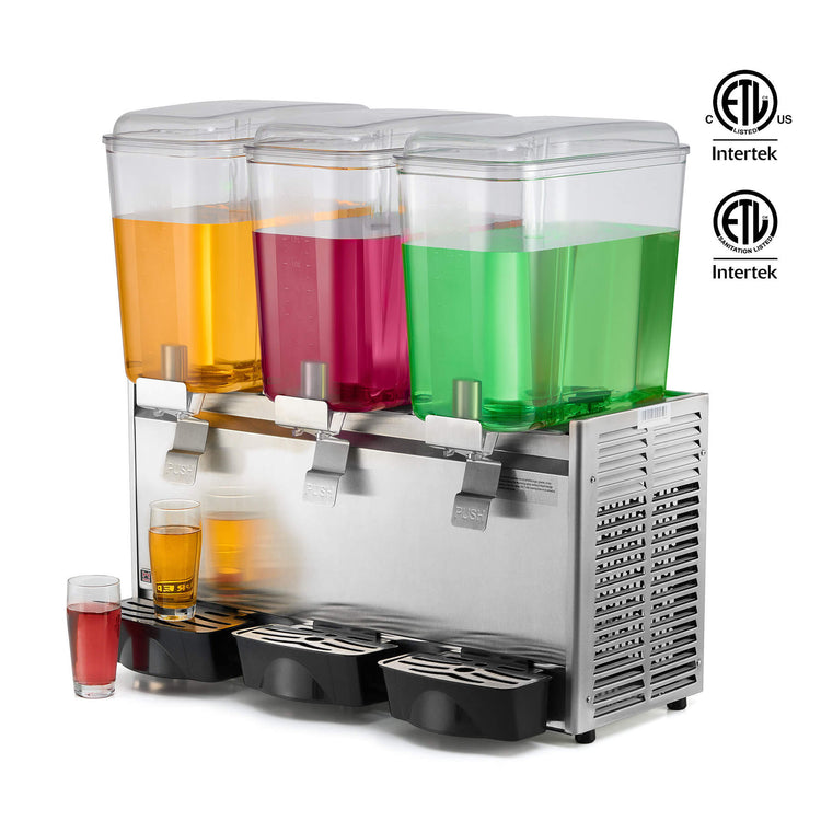 Commercial Beverage Dispenser, 18L x 3 Tanks 14.4 Gallon Refrigerated Juice Dispenser