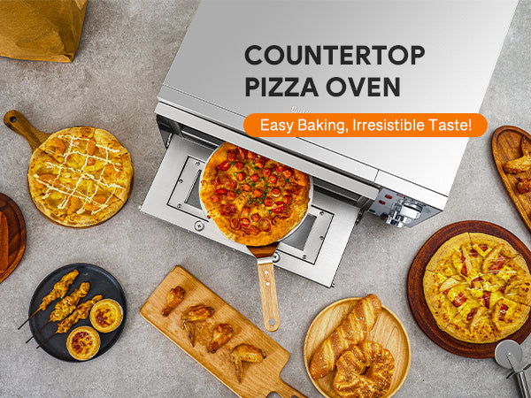 Uniform Heating: No more hot spots! The included cordierite pizza stone ensures an evenly baked, crispy crust every time. This countertop pizza oven is versatile, perfect for baking pizzas, breads, tarts, pies, and pastries, delivering consistently delicious results.