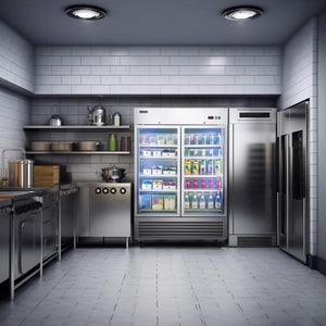 Smart Doors & Handy Light Control: This commercial fridge features 2 smart doors that automatically close when opened to 90° or less and remain open when opened past 90°. The separate light switch allows you to enhance product presentation and optimize energy usage with a simple flick.