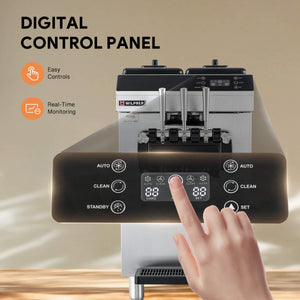 Intuitive Controls: The digital control panel simplifies operation with real-time status updates, pre-cooling to speed up freezing, one-click self-cleaning for easy maintenance, and overnight preservation to keep ice cream fresh and ready to serve