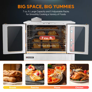 Large Cooking & Baking Capacity: Wilprep's electric commercial convection oven offers a spacious 7-cu. ft. chamber with 5 racks that can rest on 11 sets of brackets. Benefit from a variety of rack configurations to best accommodate your food, from pastries to pizzas.