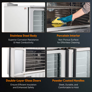 Commercial-Grade Construction: The porcelain interior of our commercial convection oven provides a non-porous surface for easy cleaning, while the stainless steel exterior offers maximum durability and corrosion resistance.