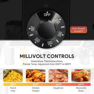 - Precise Controls & Safe Use: Our floor gas fryer features a millivolt control thermostat, allowing you to adjust temperatures from 200-400°F. It automatically cuts off gas supply at 450°F to ensure your safe operation.