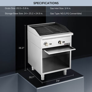 Natural Gas 24" 2 Burner Radiant Charbroiler with Storage Base-7,000 BTU