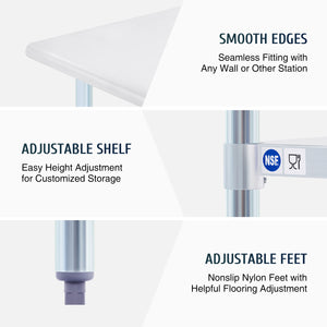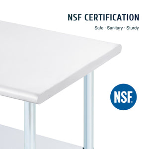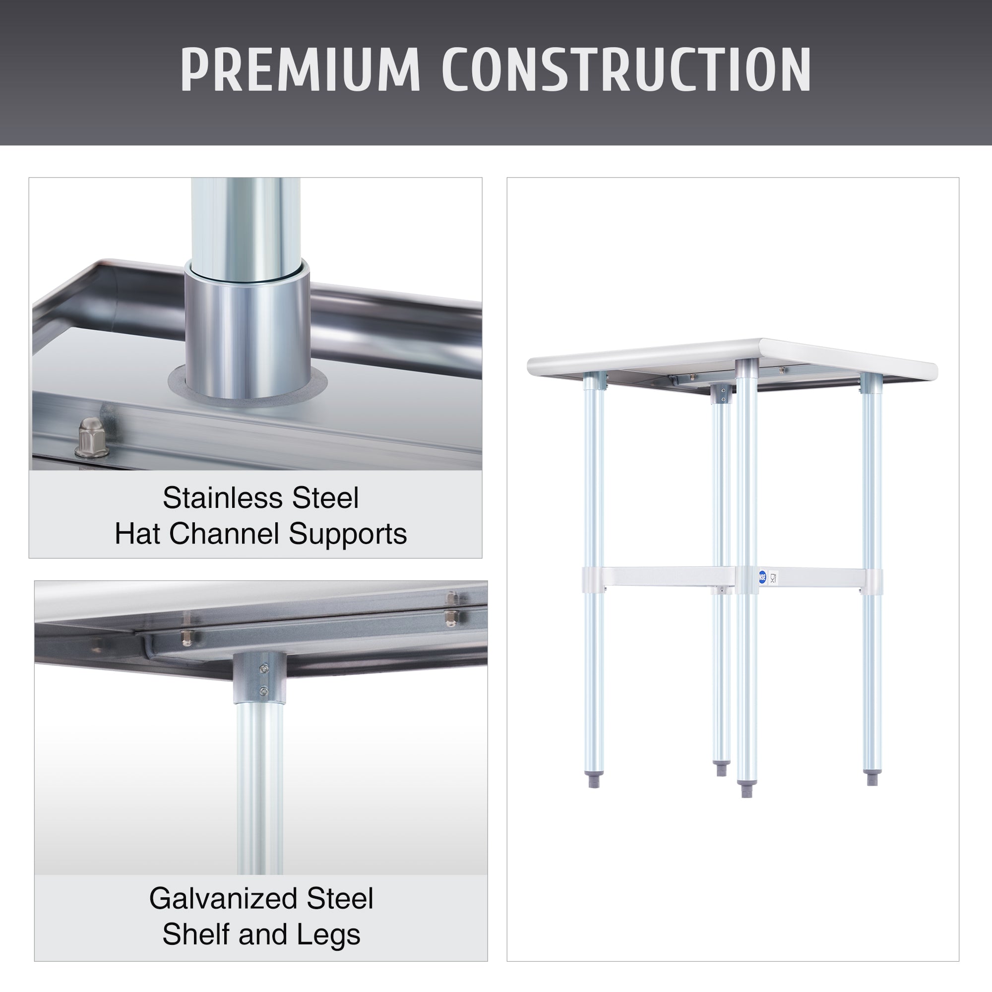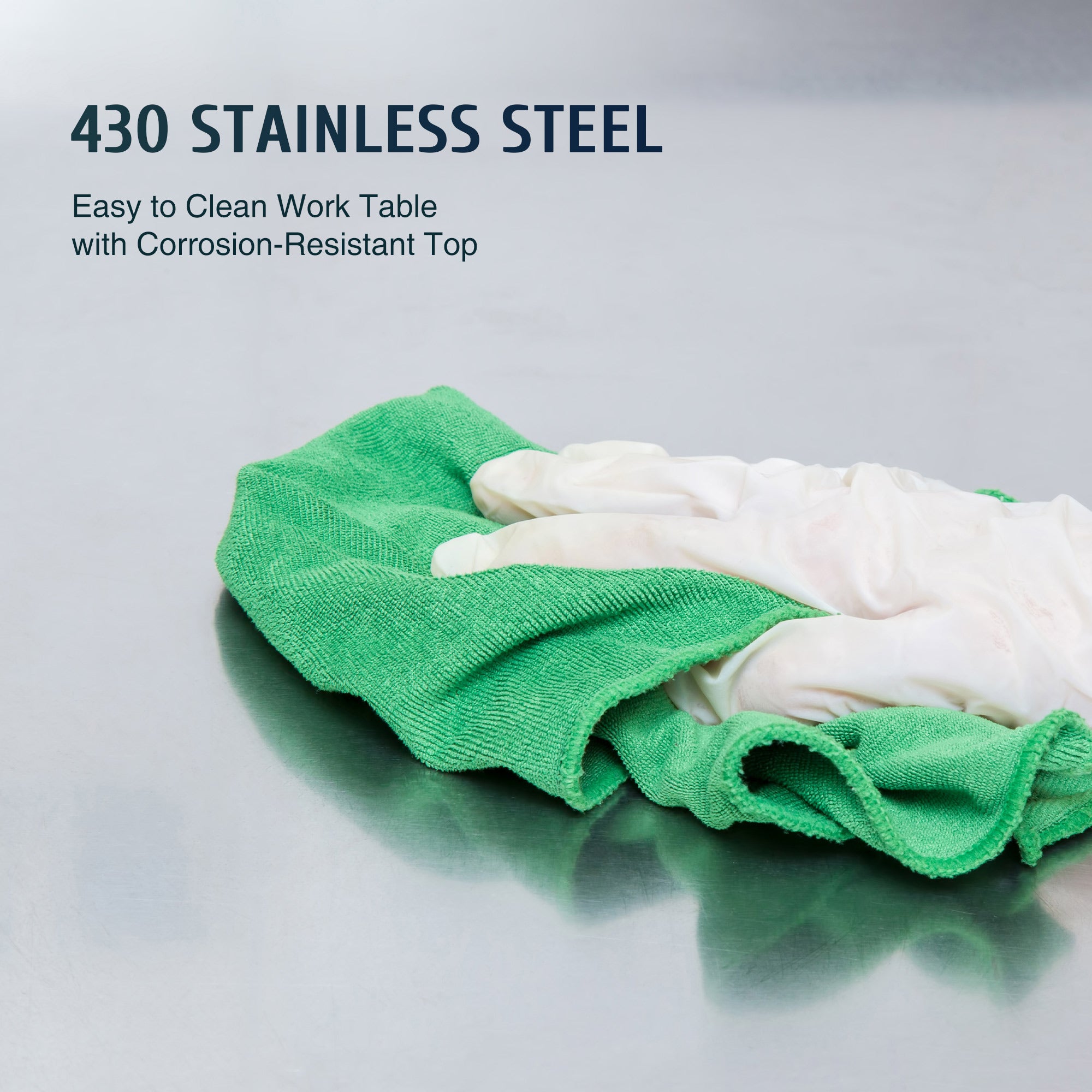- NSF certified 430 stainless steel table for food prep, plating, & more