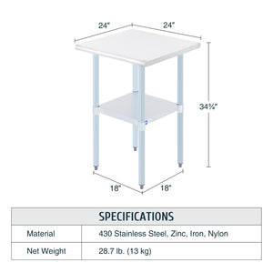 Stainless Steel Commercial Work Table - 24" x 24" x 34"