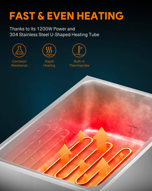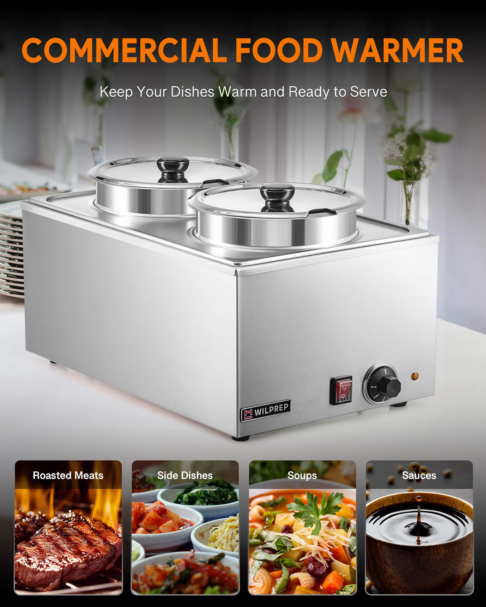 - Keep Your Food Warm: Wilprep's 1200W commercial food warmer, equipped with a stainless steel U-shaped heating tube, ensures rapid and uniform heating, keeping your dishes fresh and ready to serve for extended periods.